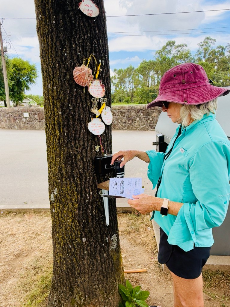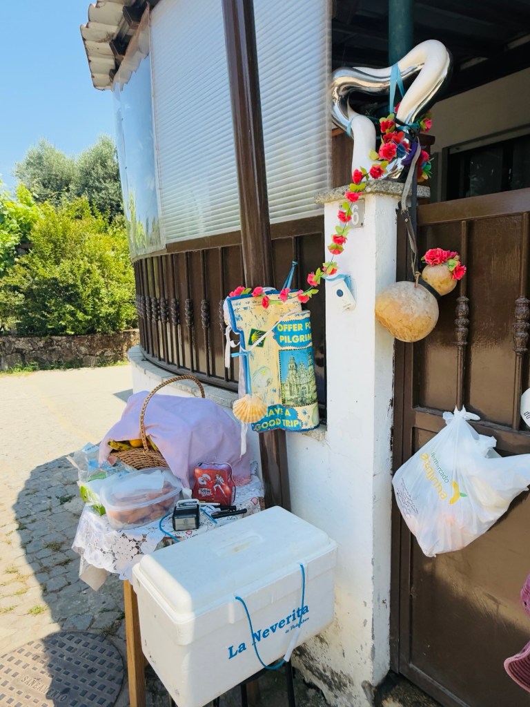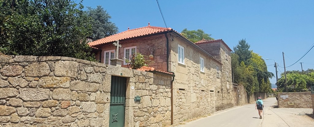 There has been a big increase in the number of pilgrims today as we are a little over 100km out from Santiago and many commence their walk around this time, needing to walk 100 km to get the Compostela certification of their pilgrimage. We meet and chat to John from New York who walked 50km on his first day- on a deadline to get to Santiago for a wedding and has his wedding outfit in his little pack. And a Canadian brother and sister on a much tighter timeline than us. We walk for a while with a Spanish woman from Seville who has joined a tour group of 40 people just starting today. That is a huge group so they obviously can’t all walk together and she is along for now.