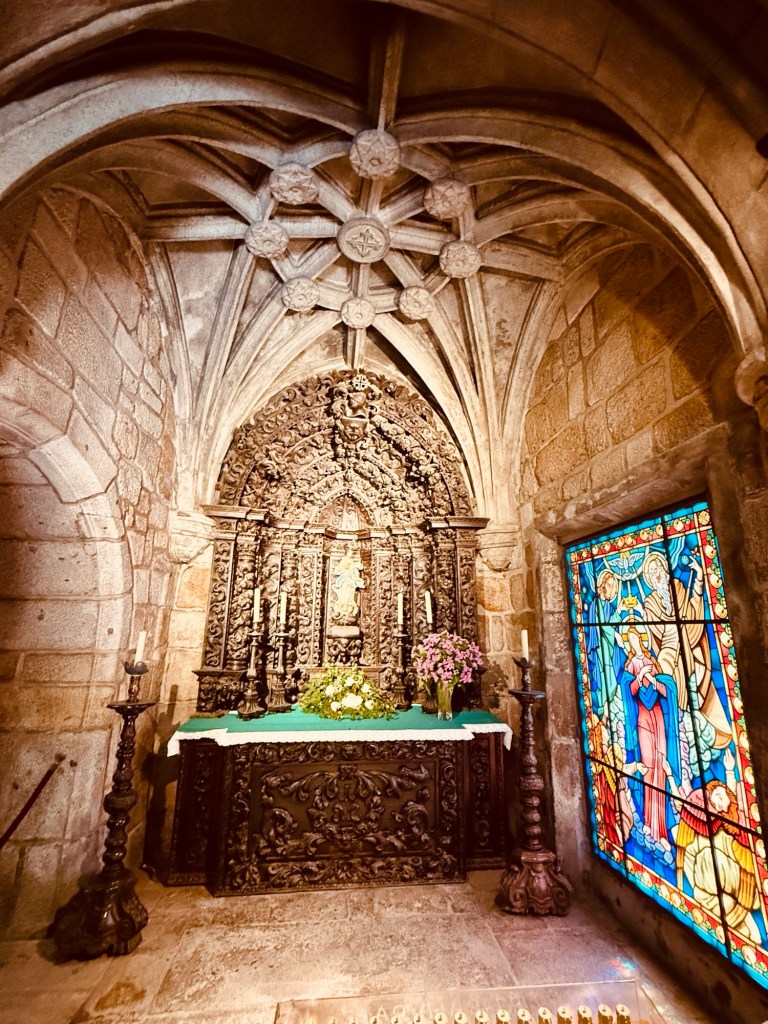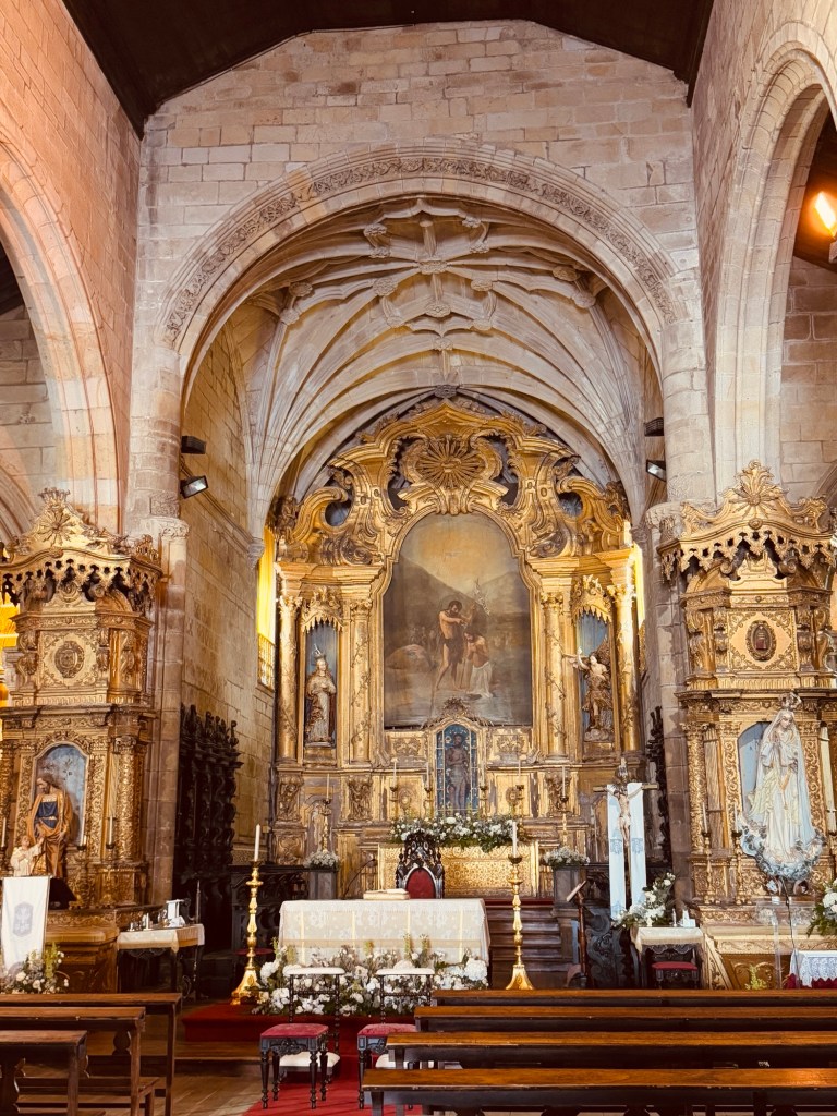 We arrive at Vigo’s Old Town… so we are now where we thought we’d be yesterday… and we’ve already walked 6km. We wander briefly through the cobbled streets where we find the Basílica de Santa María…