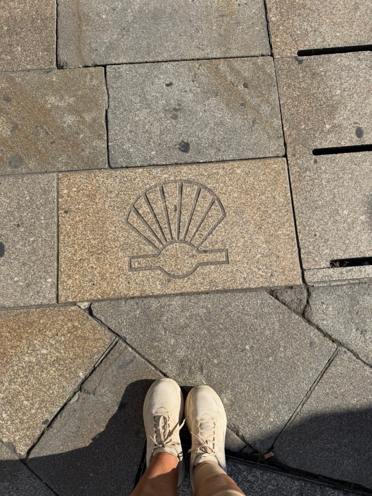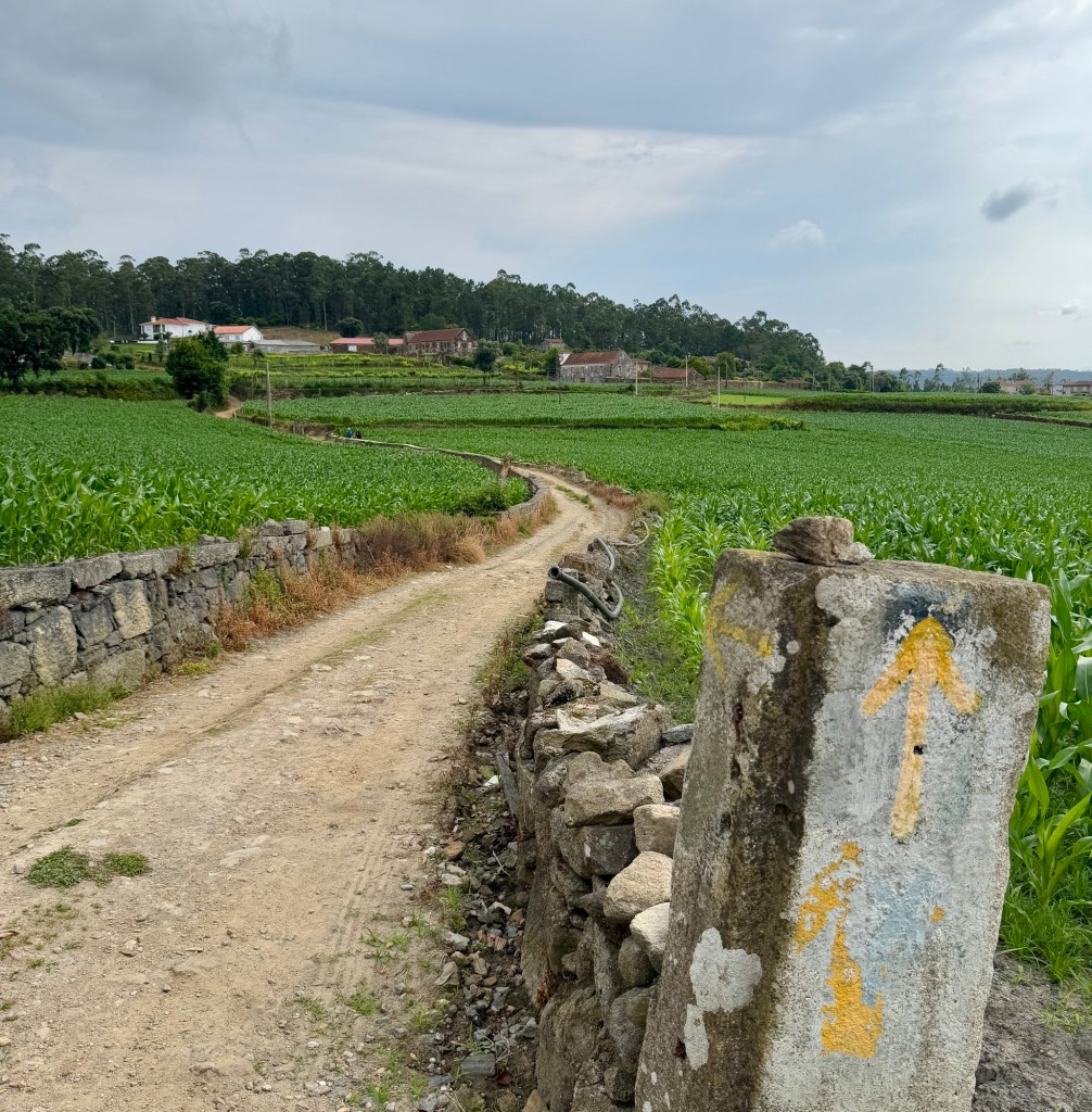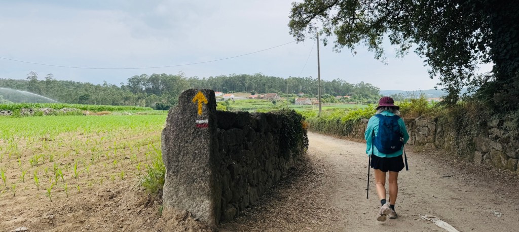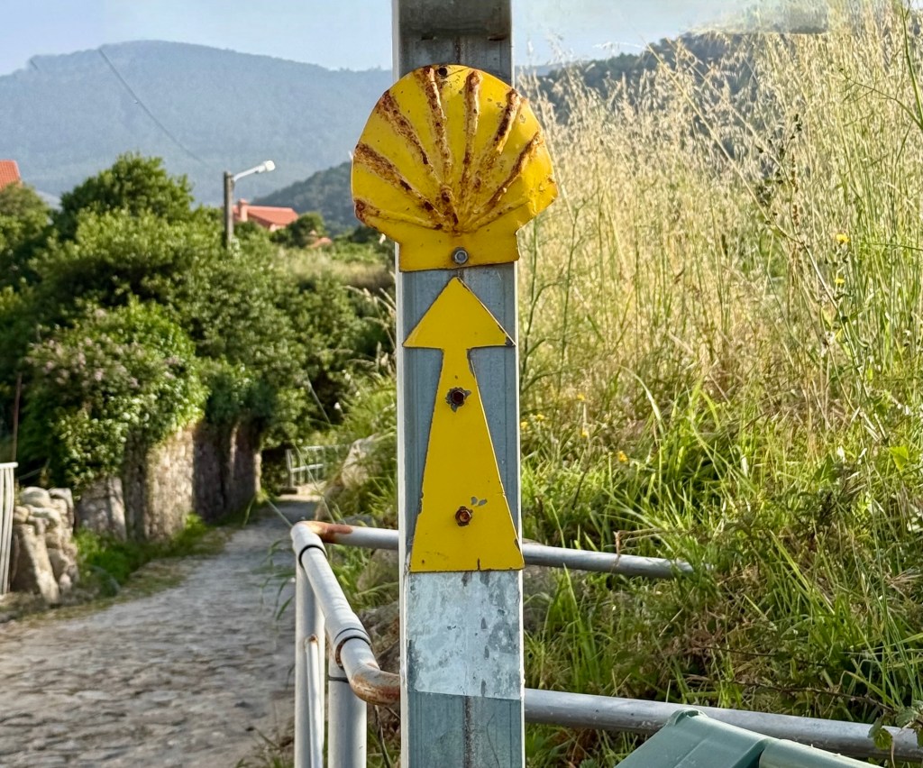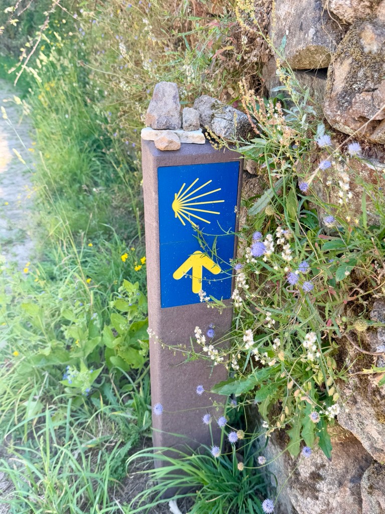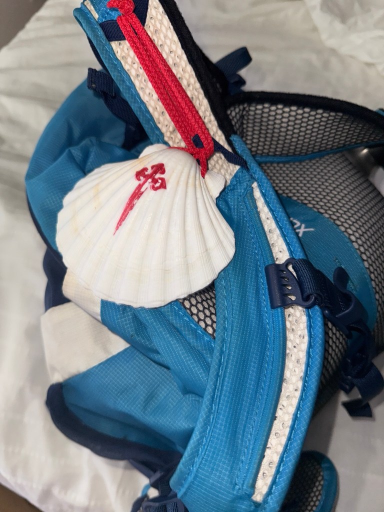 The powerful and protective symbol of the Ways to Compostela, the scallop shell has its beginning according to tradition in the sandy beaches we have already passed on our first few days walking. It represents pilgrimage, guidance, and spiritual transformation. It signifies the journey, with its lines converging towards Santiago de Compostela, and symbolizes the interconnectedness of pilgrims. Historically, it served as a practical tool for pilgrims to eat and drink, and has become a widely recognized emblem of the Camino, used on markers and worn by pilgrims. We have one hanging on our packs.