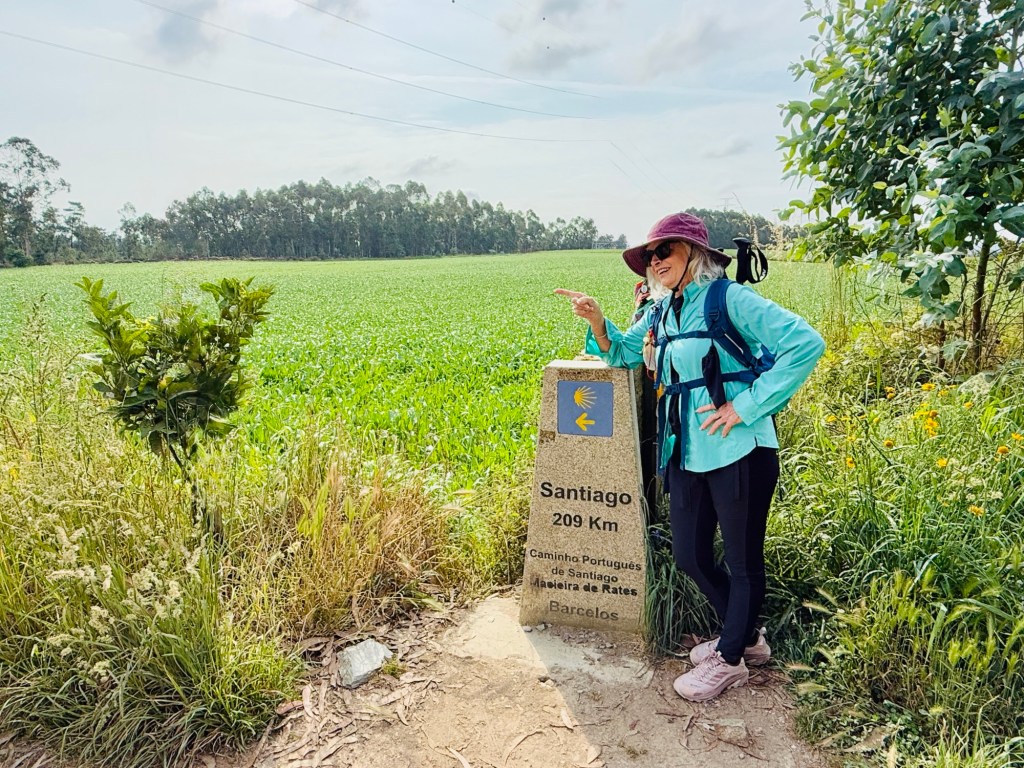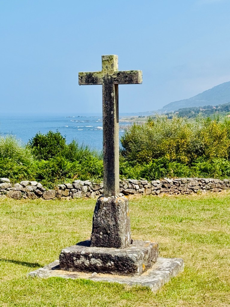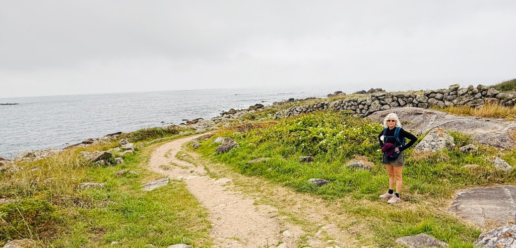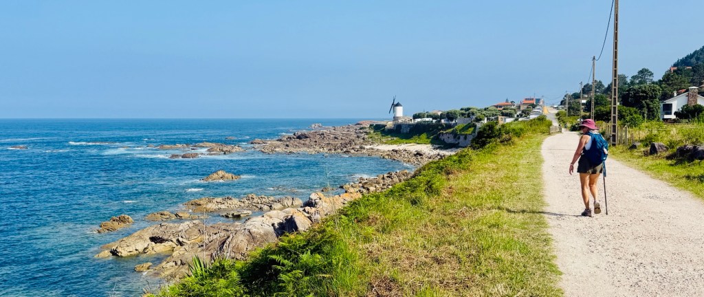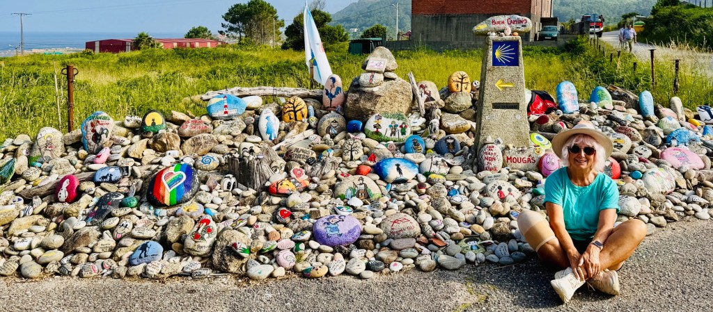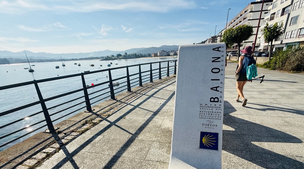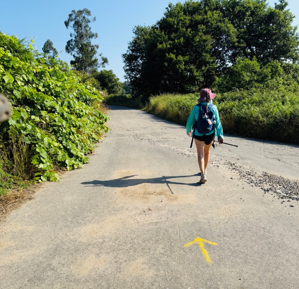 The powerful and protective symbol of the Ways to Compostela, the scallop shell has its beginning according to tradition in the sandy beaches we have already passed on our first few days walking. It represents pilgrimage, guidance, and spiritual transformation. It signifies the journey, with its lines converging towards Santiago de Compostela, and symbolizes the interconnectedness of pilgrims. Historically, it served as a practical tool for pilgrims to eat and drink, and has become a widely recognized emblem of the Camino, used on markers and worn by pilgrims. We have one hanging on our packs.