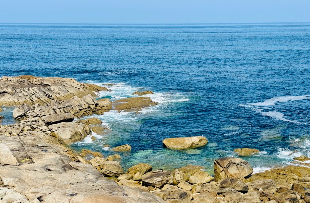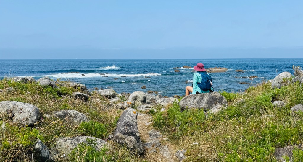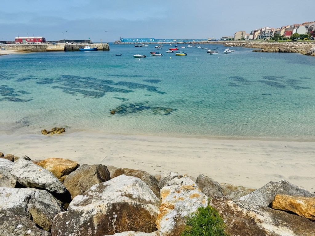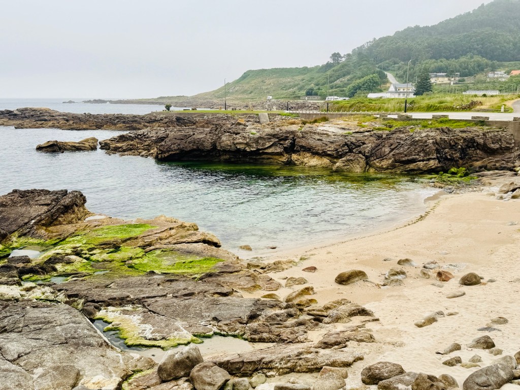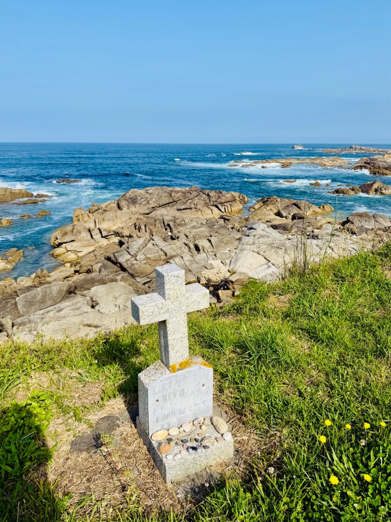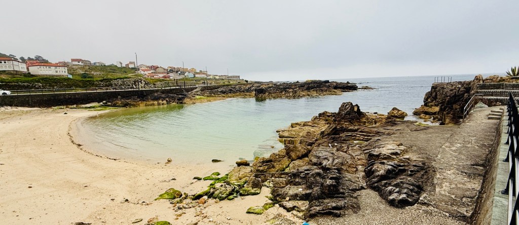 At one of these… Praia do Portiño, I can’t resist and pull off my shoes and socks and paddle in the cold clear Atlantic waters.