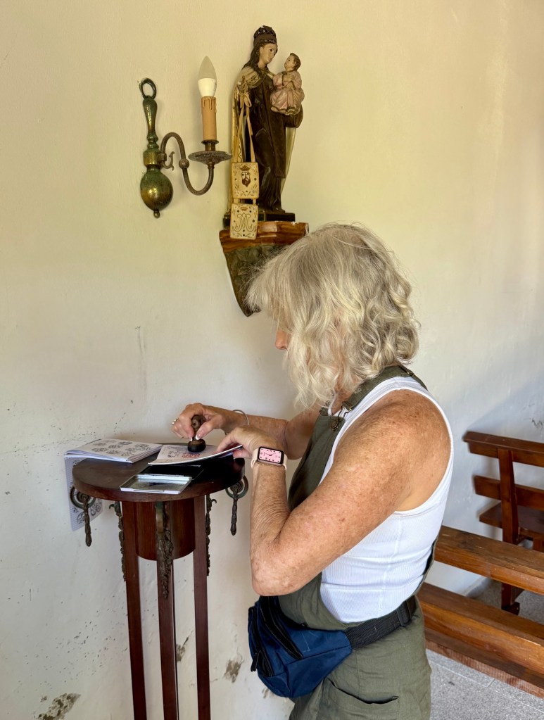 And Anne and I have often walked in silence… lost in contemplation of life and the beauty of the planet and appreciation for where we are. But the crowds are noisy, constantly chattering and laughing… and I know that is their right… and they’re having a great time (and that is good), but I wonder what their motivations for being here on a pilgrimage are. Not that it matters… but it kind of does. And I feel like a cranky old person when we stop in to visit a beautiful simple little chapel and the people standing at the door are making so much noise… and it feels like they are somehow trampling on holy ground… with no respect. And all day this “noise” has messed with my head. I’m not sure if that makes sense but it was very real for me.
