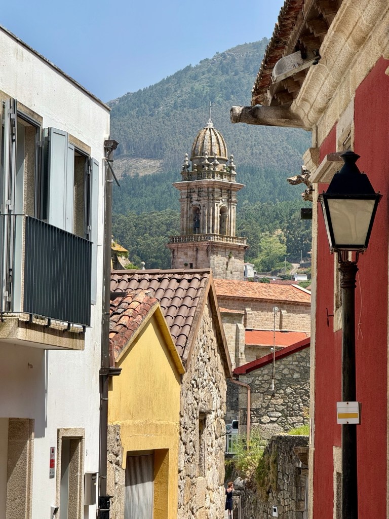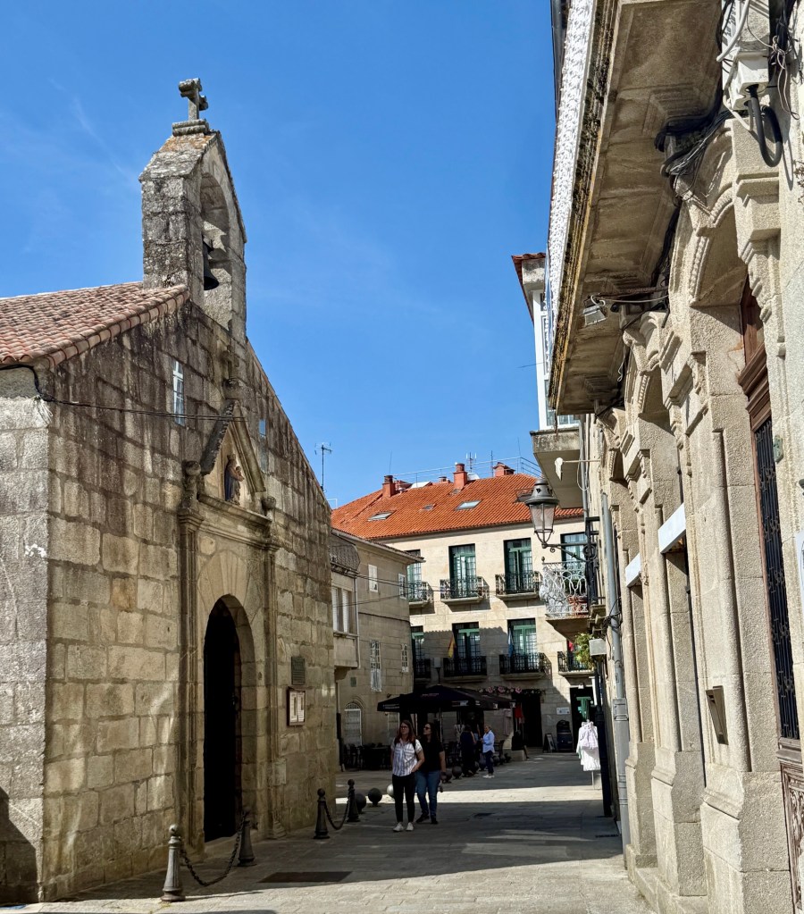 The Church of Peregrina is a very distinctive rounded church, located on the Praza da Ferrería in the centre of town. Built in the 18th century, it is Portuguese looking in its style. The church is dedicated to the Pilgrim Virgin who is said to watch over those walking the Camino Portuguése. I climb of course to see the dome up closer.