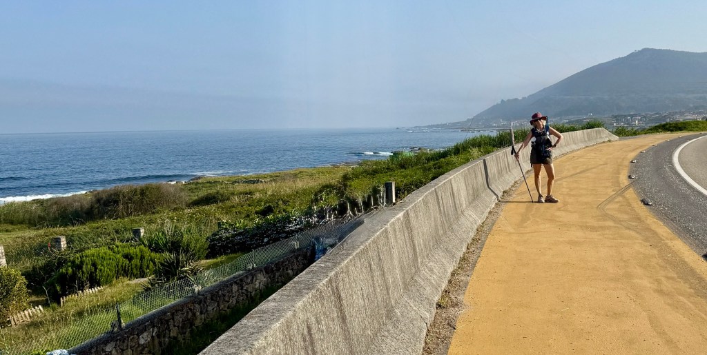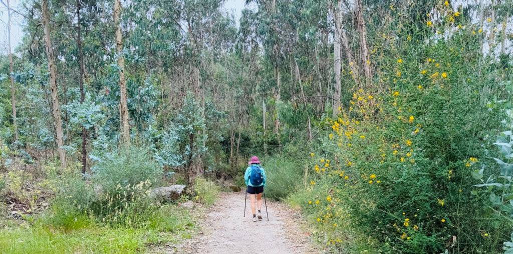 I had a few concerns about finding our way to the central route today as I had read that the markers weren’t great and knowing me, we’d get lost. Directions are certainly not my strongest talent. But in hindsight, I wish I had followed my gut and Google maps as my Camino Ninja App doesn’t seem to switch between routes. Anyway, we ended up following the shells and walked and walked and nothing seemed to really change. By now I was expecting to be walking in the beautiful Portuguese countryside where wildflowers grew in the meadows, cala lilies flourished in big clumps under grape vines and every town or village seemed to have an ornately patterned chapel. This is what I had read about today’s journey but it just wasn’t happening. Eventually I checked google maps just to see where we were and realised we had been following the waymarkers for the Senda Littoral or coastal route where we were meant to have turned off. We are now an hour past the turn off and it’s no point going back so I just resort to google maps to find our way to Rates.