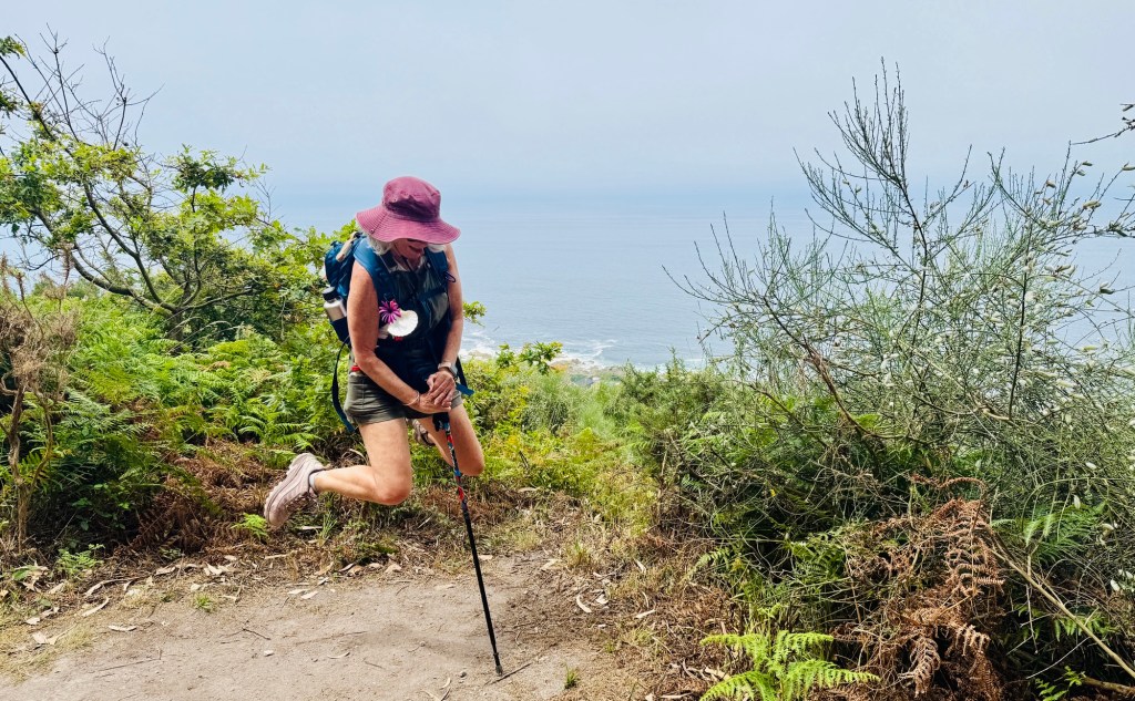 Anne struggles with the hills but does really well today. There was nowhere to stop and no facilities so we literally just sat on the side of the road on very uncomfortable bumpy concrete, and catch our breath and drink some water. A little further up this hill we find a seat and sit for quite a while- this is our 10km stop which is usually an important one for me if my body is going to have a good day. Because we’d climber so high, the panoramic view of Vigo and the Cies Islands is amazing.