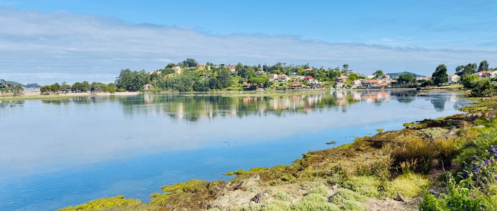 The countryside is dotted with pretty farmhouses and there are at times, beautiful views of the Vigo estuary.
