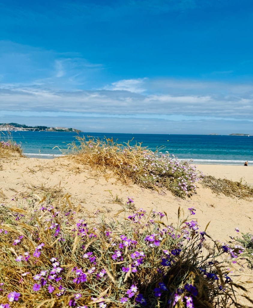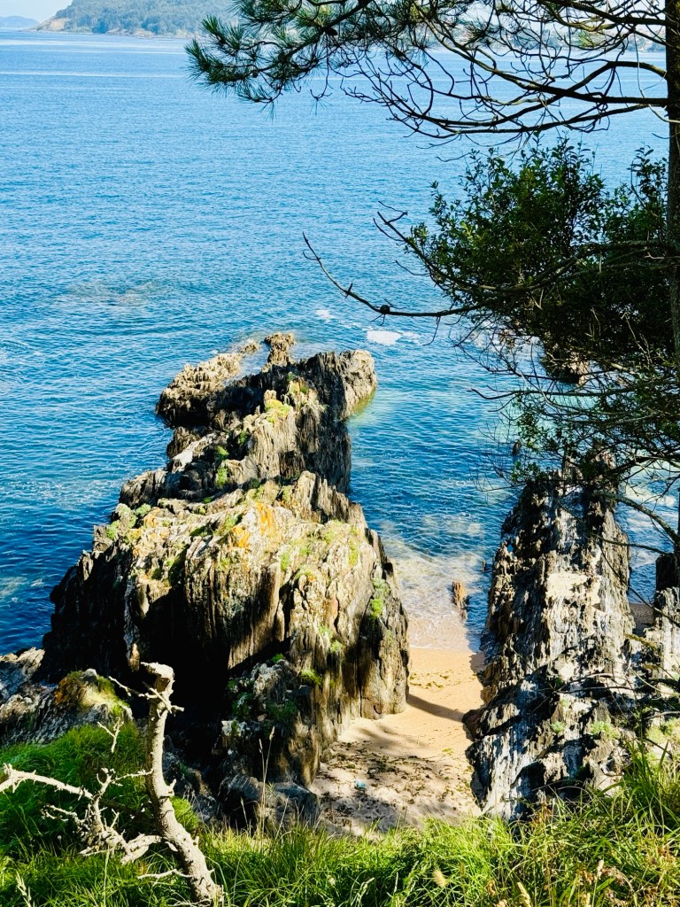 Sadly now is not the time to stay at this stunning little beach… so we continue up stairs and steeply uphill into residential streets, climbing over another headland but this time we had glorious views of the Cíes Islands.