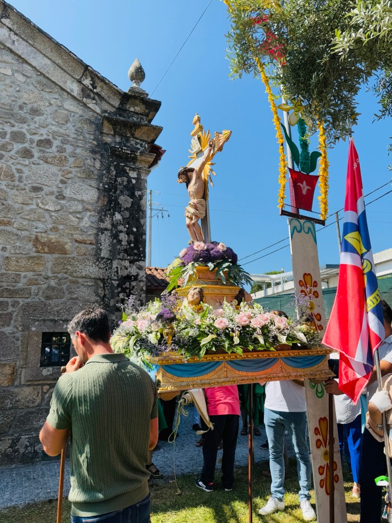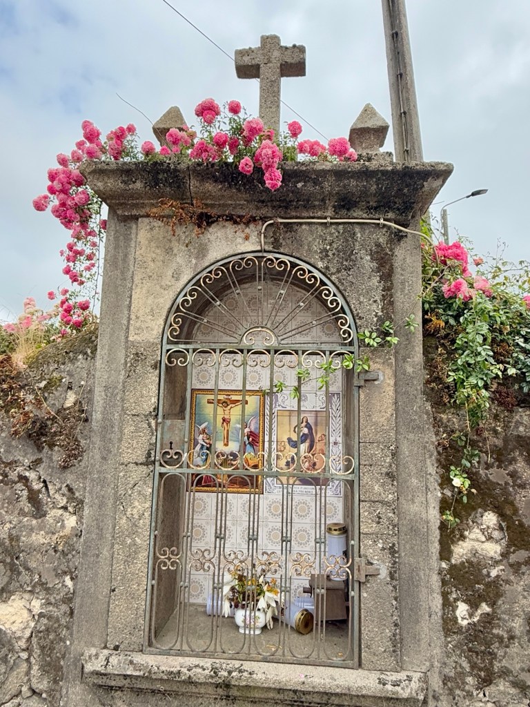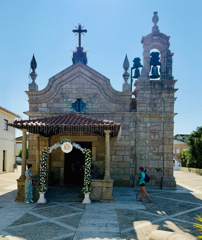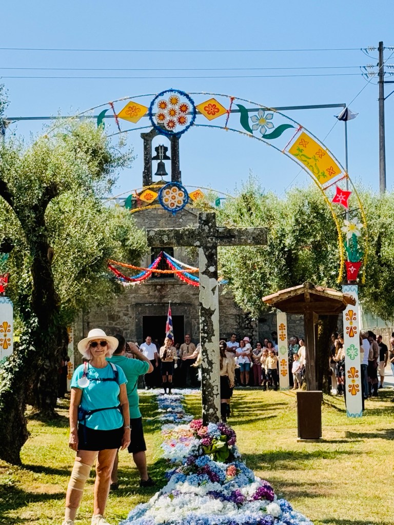 Far off in the distance I could hear drumming and wondered what it was… probably some kind of festival as there has been one in nearly every place we’ve been. We continued to walk and it didn’t stop. Eventually we got to the tiny village of Lijó where the drumming was coming from and it seemed like the whole town was walking towards something. We were going this way anyway and followed… just in time as everyone descended on the little chapel of Santa Cruz… built in 1843 after a cross appeared on the ground. Some kind of celebration was happening apparently associated with the Festival of the Crosses (Festa das Cruzes), which takes place in June, specifically at this time.
