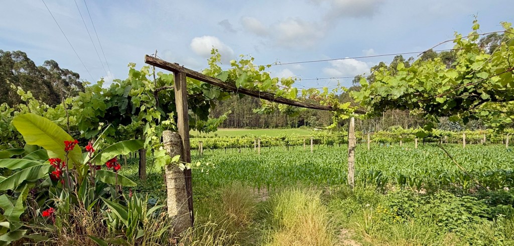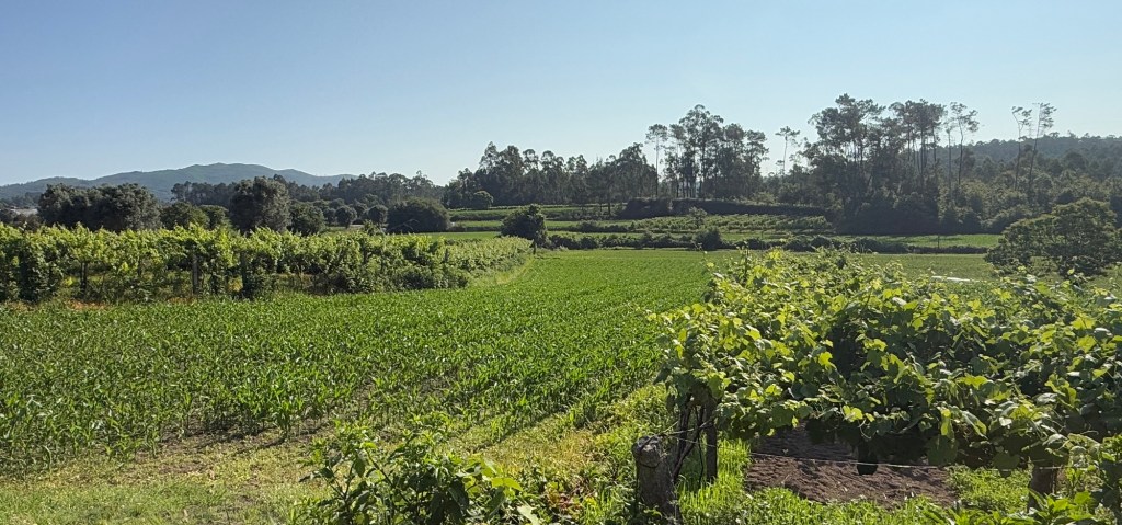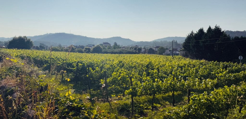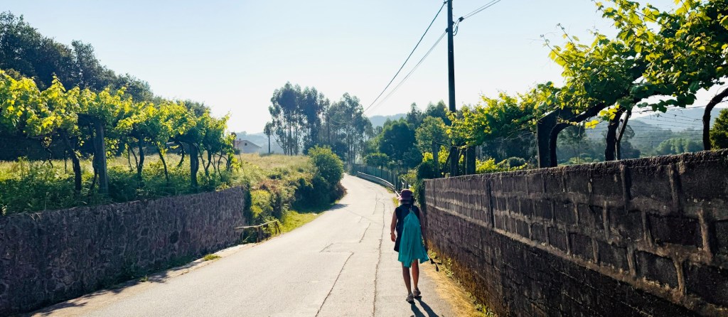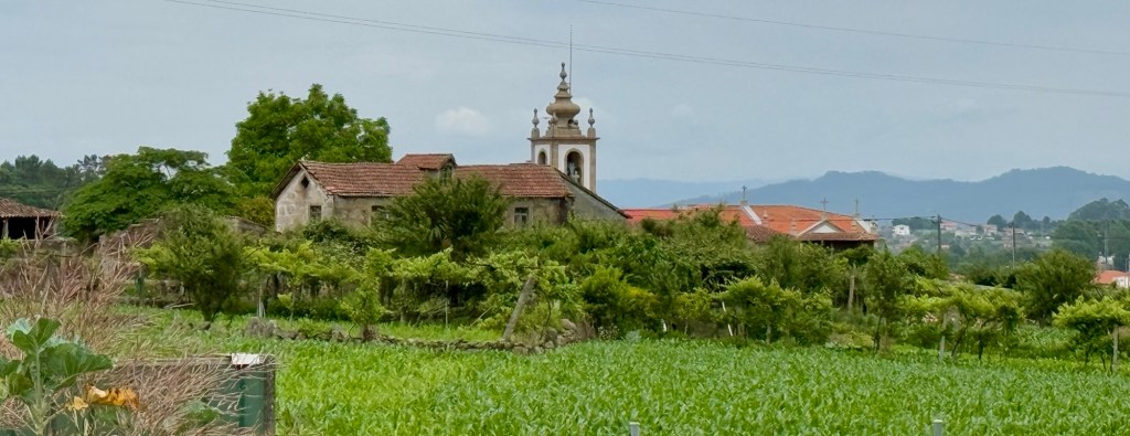 We pass a tiny church and then, leaving Balugães behind, walk through vineyards and lush green countryside.