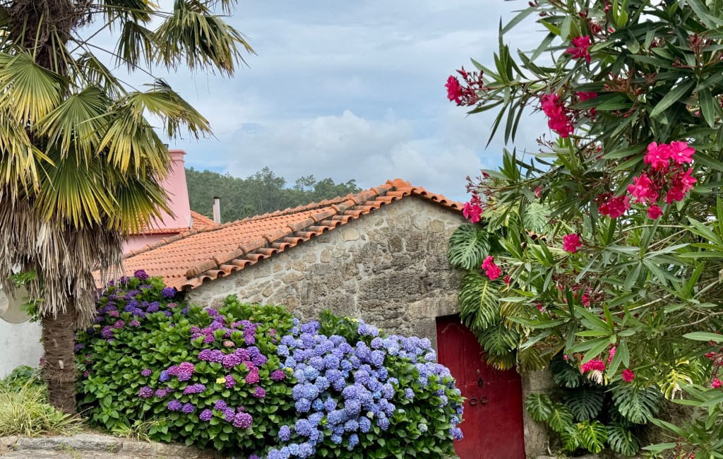 Our destination today is Ponte de Lima… an ancient little town along the Lima river. It is a beautiful day on the Camino… peaceful and quiet… passing vineyards, orchards, pretty homes with beautiful gardens that are a riot of spring flowers…