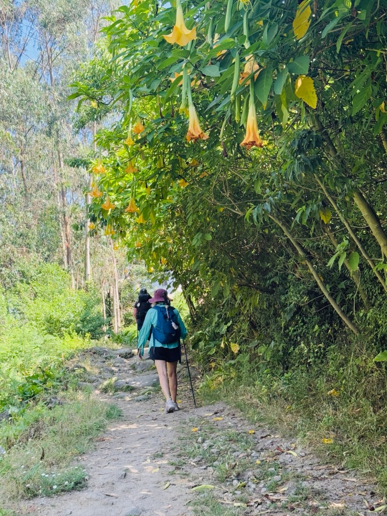 I felt a connection with mum… even though our relationship was always difficult. And maybe that is part of why I am here… coming to terms with never having the relationship with her that I might have expected… the disappointment of what never was and never can be. And as I was thinking about this, I came across a gardenia bush… which I hadn’t seen in Portugal before. Gardenias were mum’s favourite flower and what we threw on her coffin before she was buried. I picked one and attached it to my pack and had that beautiful fragrance with me all day. One of the small blessings of the Camino. They say “the Camino always provides”… whatever it is you need. Even if it’s a gardenia.