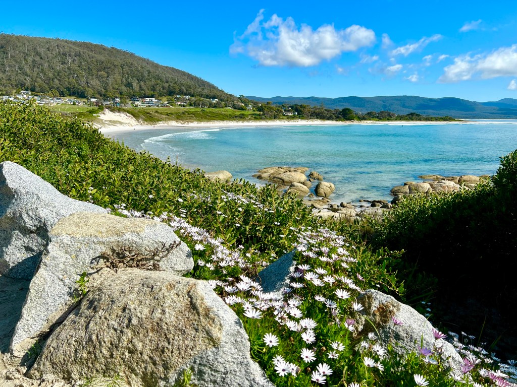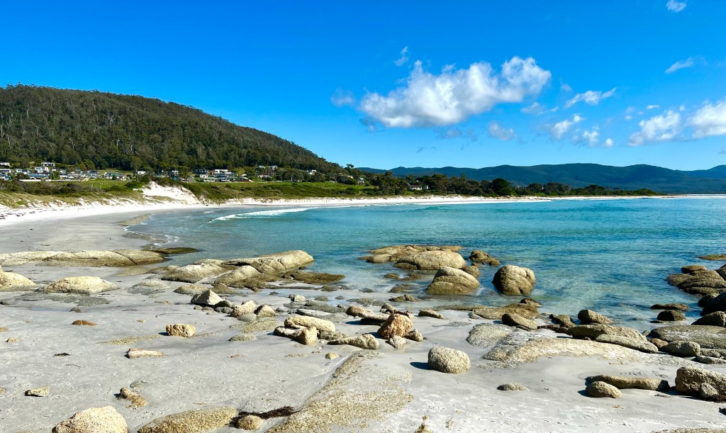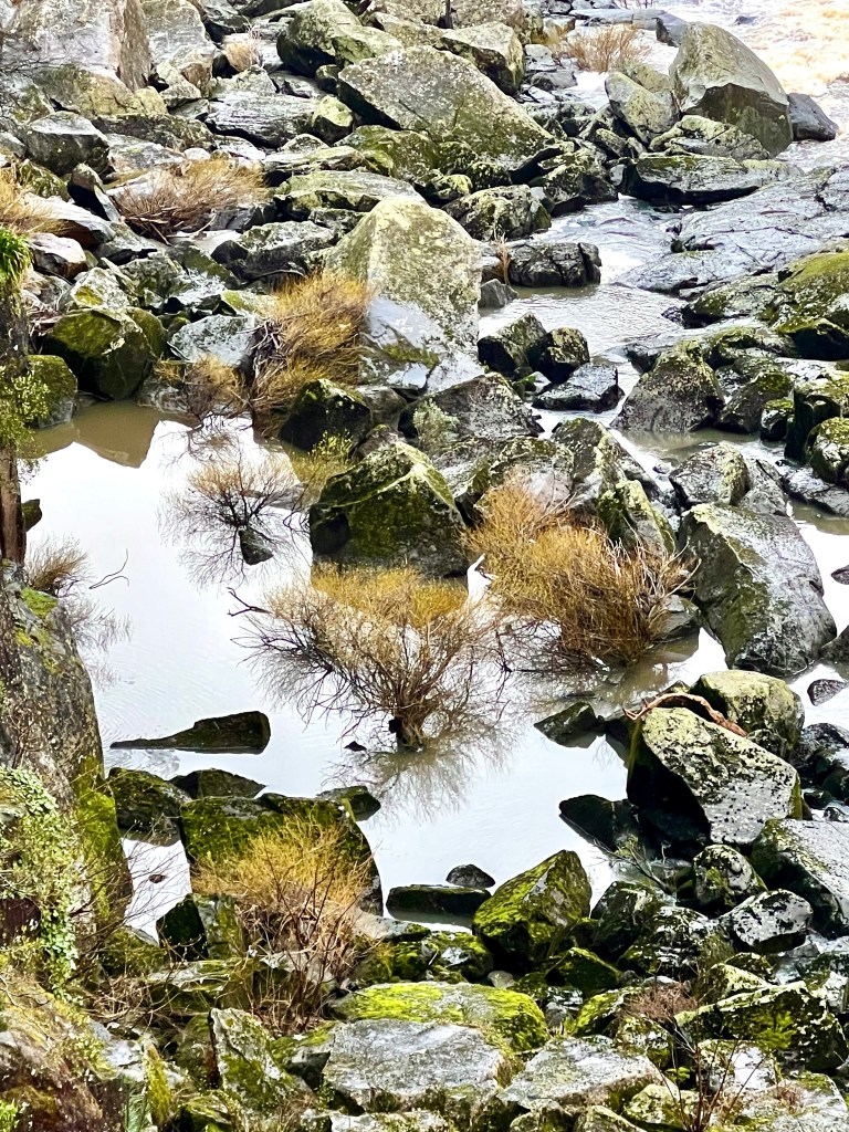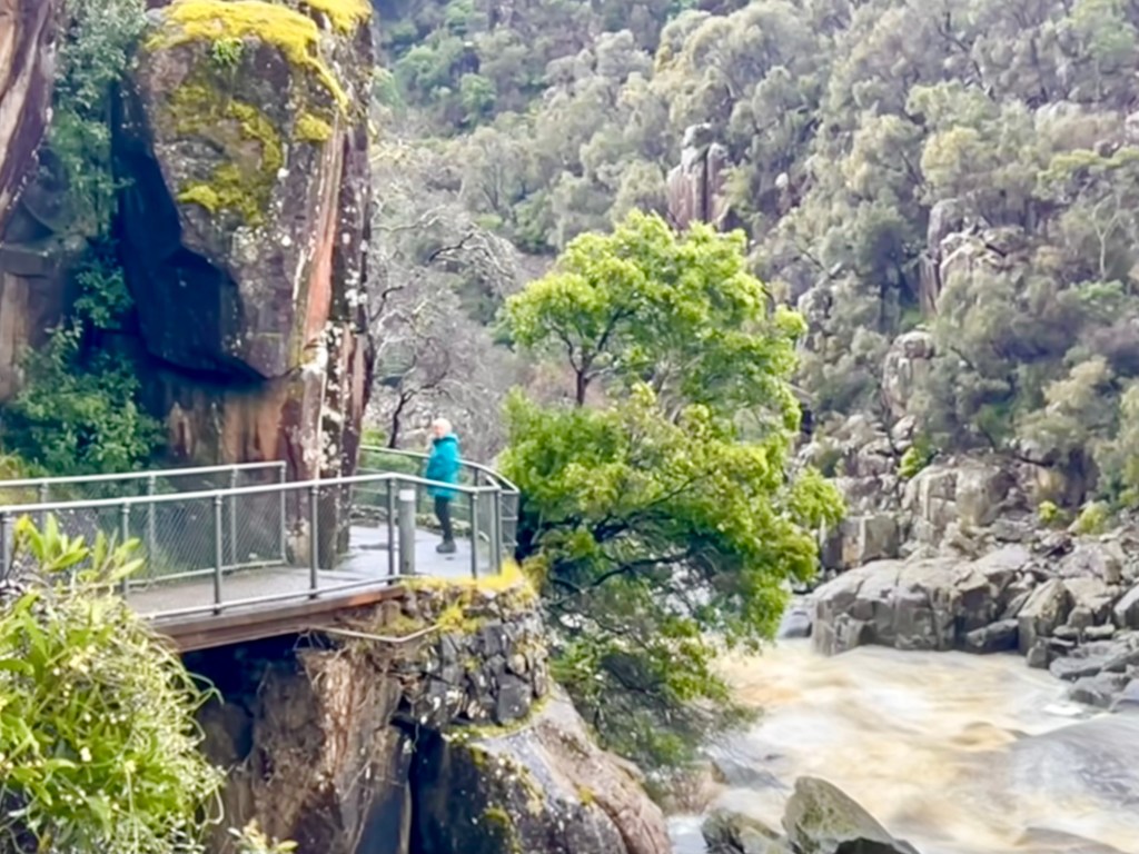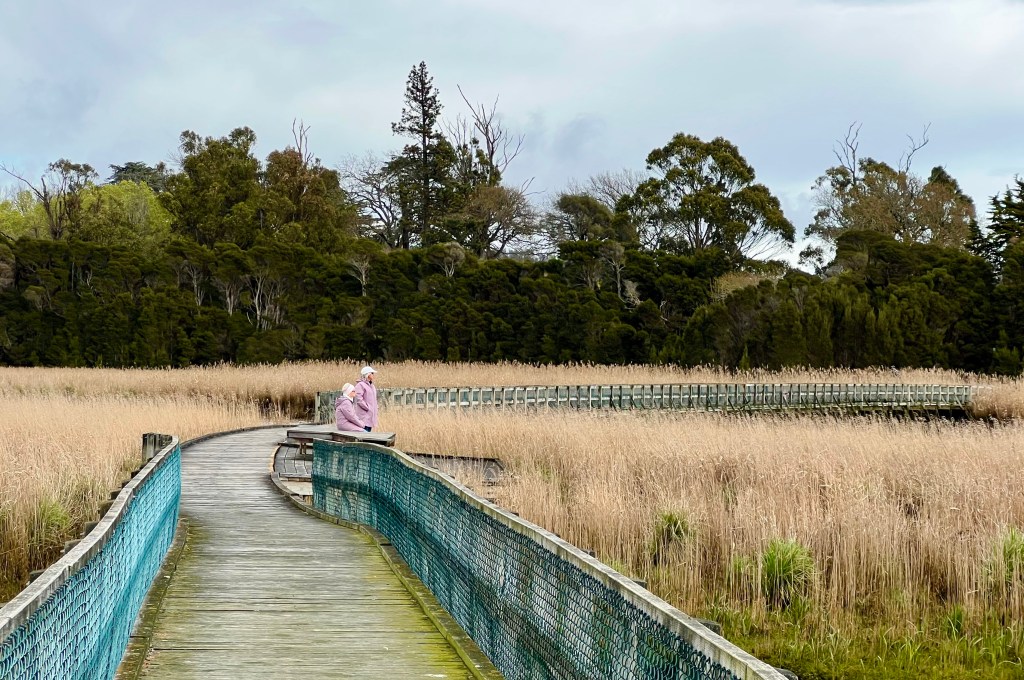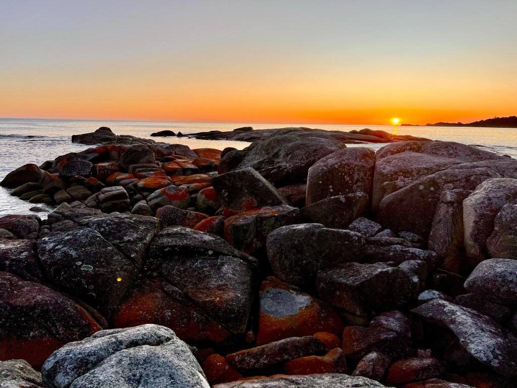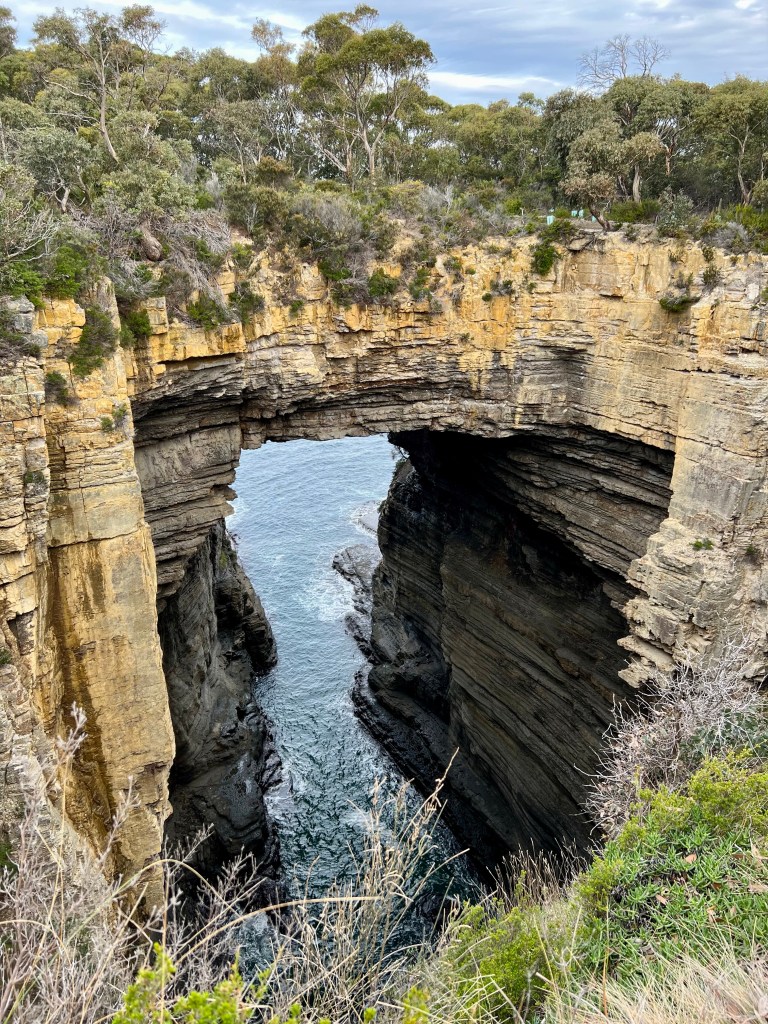 After returning to Strahan, the girls return to our little BnB to warm by the fire while I decide to walk to Hogarth Falls. It is a pretty waterfall, cascading down the sheer, mossy rock face to the log strewn, tanin-stained waters below. A lovely short walk to the waterfall, the tree-fern lined walking track meanders adjacent to Botanical creek beneath stands of towering eucalyptus and through verdant temperate rainforest. It is apparently home to a number of platypus that frolick in the mornings or at dusk… but sadly, despite constant looking, I still haven’t managed to spot one.