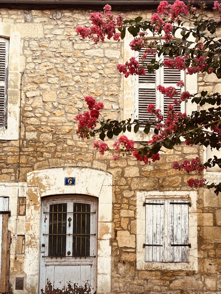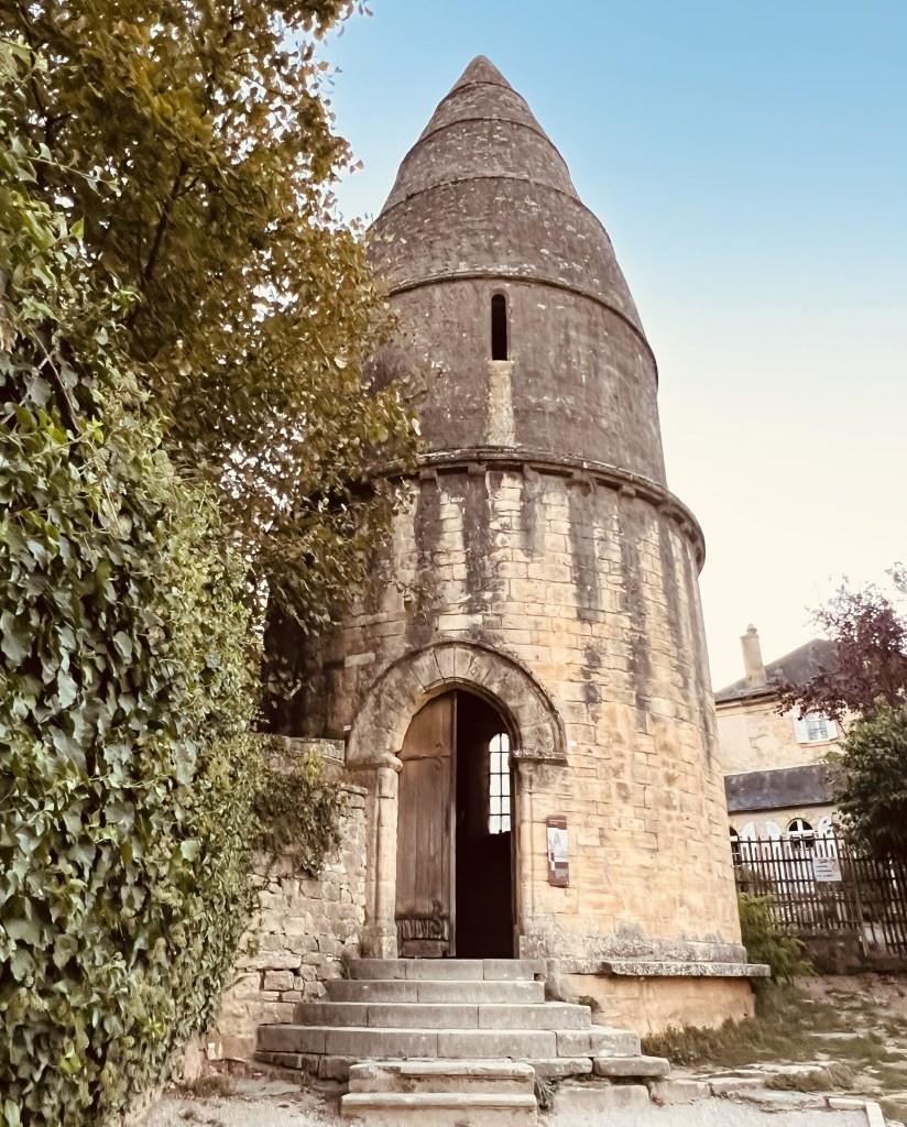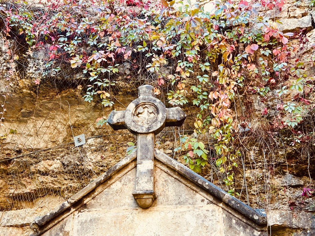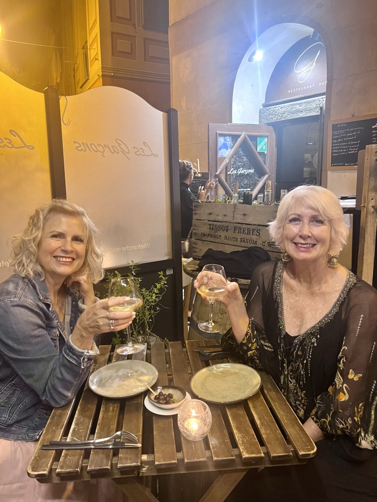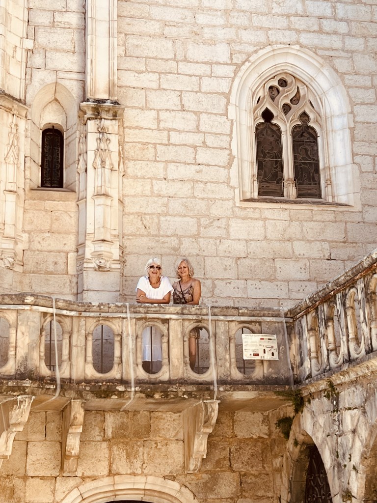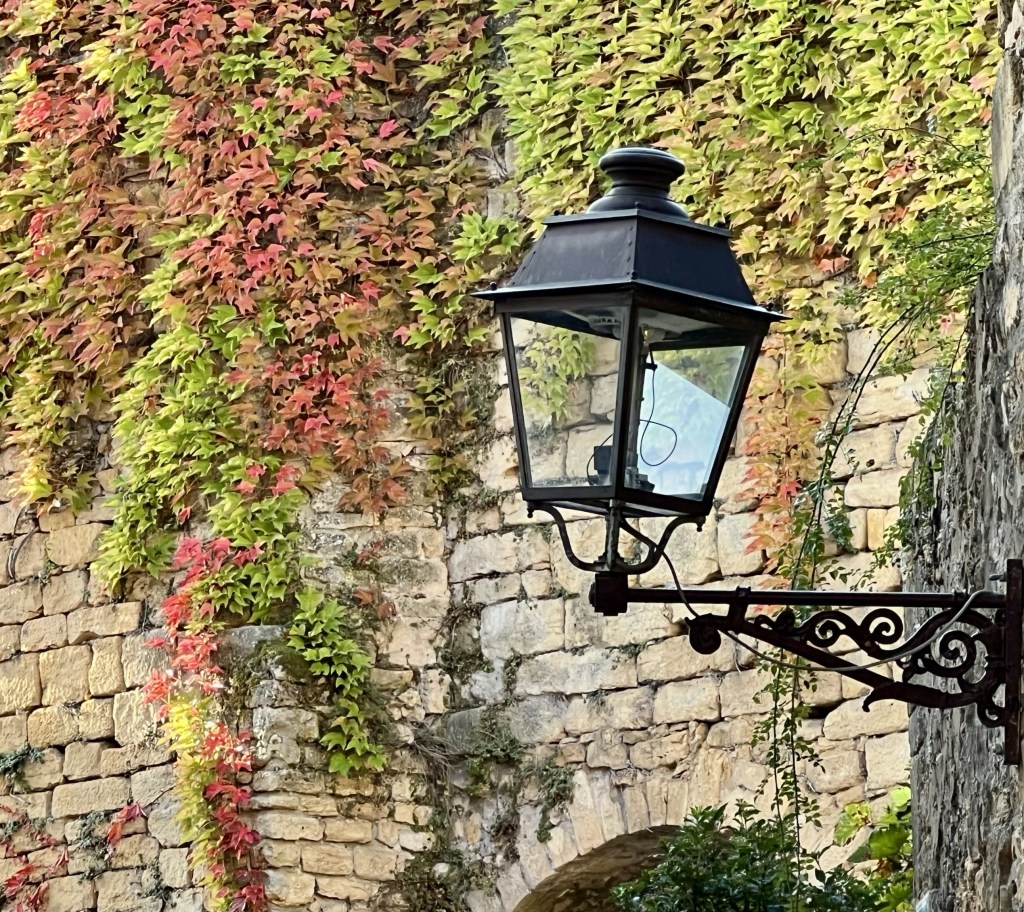 So we left Aix en Provence with our longest travel day of our whole trip ahead of us- four trains and eleven hours on the road (so to speak). The first two trains went smoothly and on time including our longest single train journey of five hours into Ajen. Here we discovered that there was some kind of issue with the trains (not speaking French certainly makes it difficult gathering information) and we would have to get a bus to our next destination, which would take longer than the planned rail leg, meaning we would miss our final connection into Sarlat. Our already long travel day had now turned from eleven hours into thirteen… arriving now at 10.30 pm… certainly too late for dinner. As we would have a nearly two hour wait once we arrive in Siorac we thought we would have dinner here while we waited, but when we arrived, in the dark, we were told it was too far to town for us to walk. Resigned to a long hungry wait, I googled and found it was only a ten minute walk to town..so we left our bags with the lovely young rail attendant (who obviously thought these two sixty something year olds couldn’t walk ten minutes into town 😂) and walked through a very pretty, dark, deserted town and found a little hotel with an open restaurant and had a really delicious meal and much needed wine. Anne put on her google maps (that somehow is determined to lead us astray) and we started to walk back in the dark to the station, using our phone torches to make our way. I questioned when we crossed the railway track as we had not crossed it on our way out… but Anne said , ‘trust me.’ Famous last words! I kept questioning how we would get over to the other side but google was saying there was a way. There wasn’t… and time was getting short. We ended up having to climb a fence, go through a thorny ditch and then walk across the track, all by torch light, to get back to the station. But we did make it onto our last train and finally into Sarlat, where we still had a nearly two km walk dragging our bags to where we were staying. It was certainly a relief when we arrived to our lovely little stone-walled apartment ( which we later realized looked out over the ancient moss-covered rooftops of layered slate)…