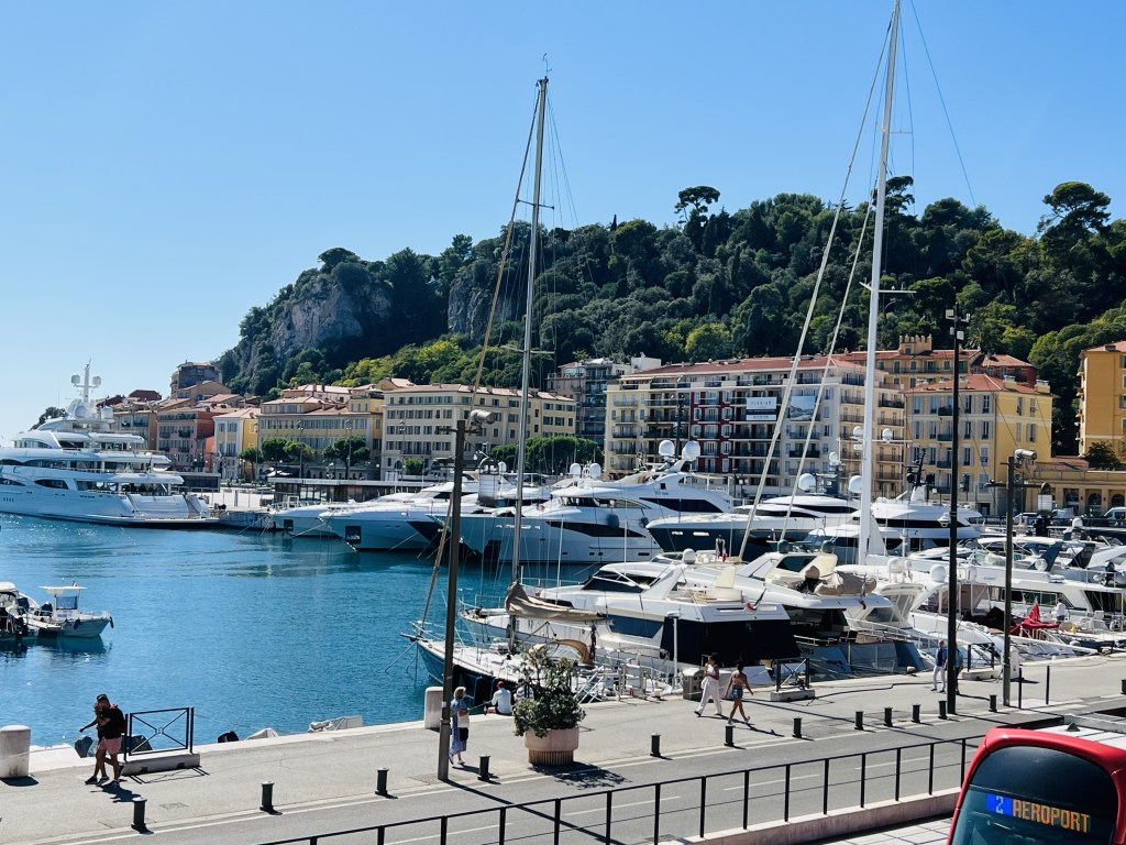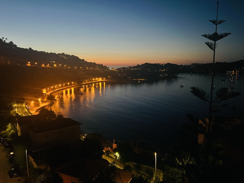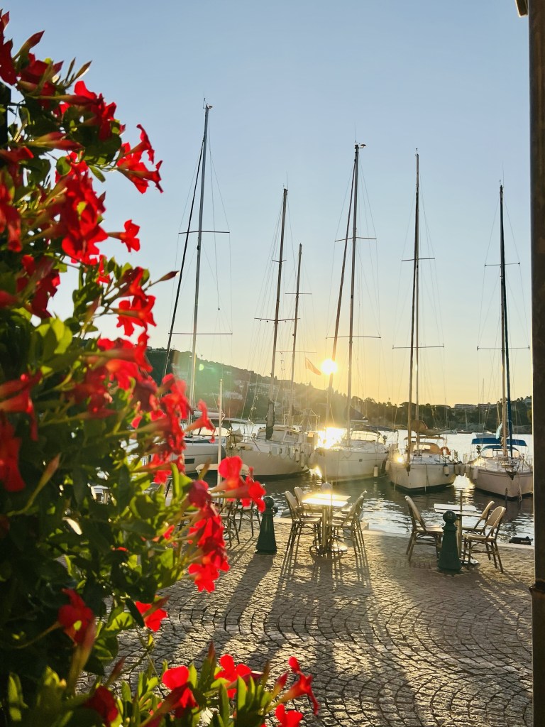 While it might not appear so, we are travelling on a budget and most of our hotels have been average at best (see Shepherds hut in Cochem 😂). So despite the very steep walk from the station dragging our bags, it was delightful to arrive to this view from our apartment for the next week. Sitting on our balcony we can see the beach… yachts and cruise ships coming in and stately villa’s perched on top of the green hills.
