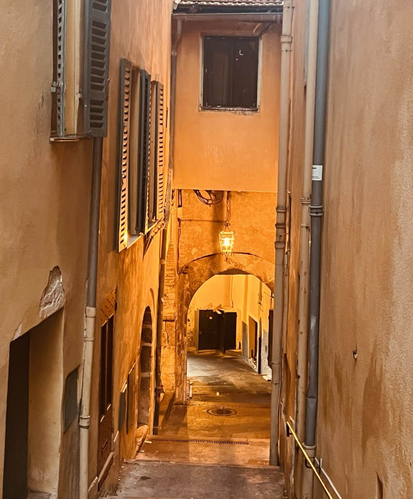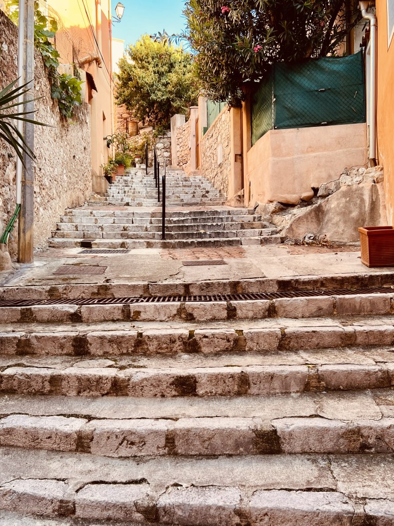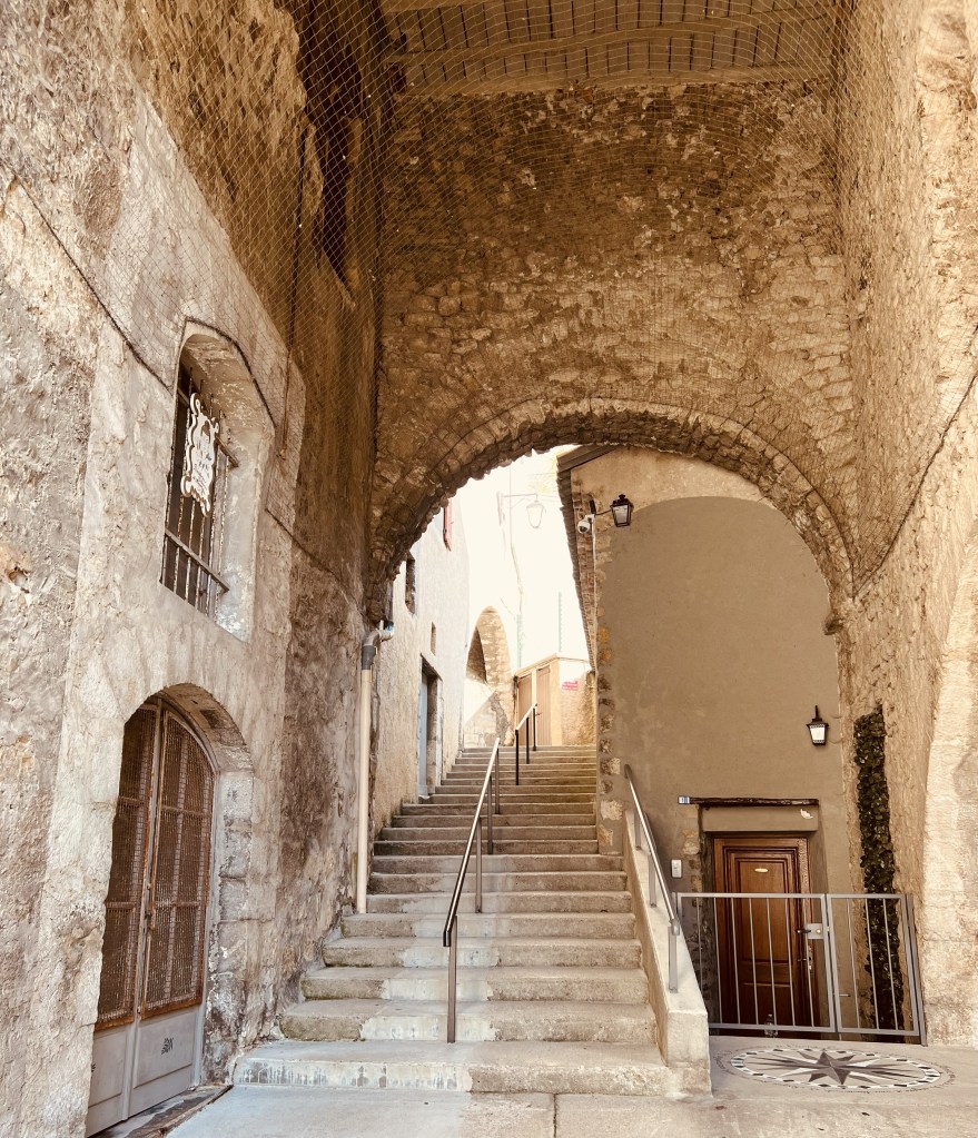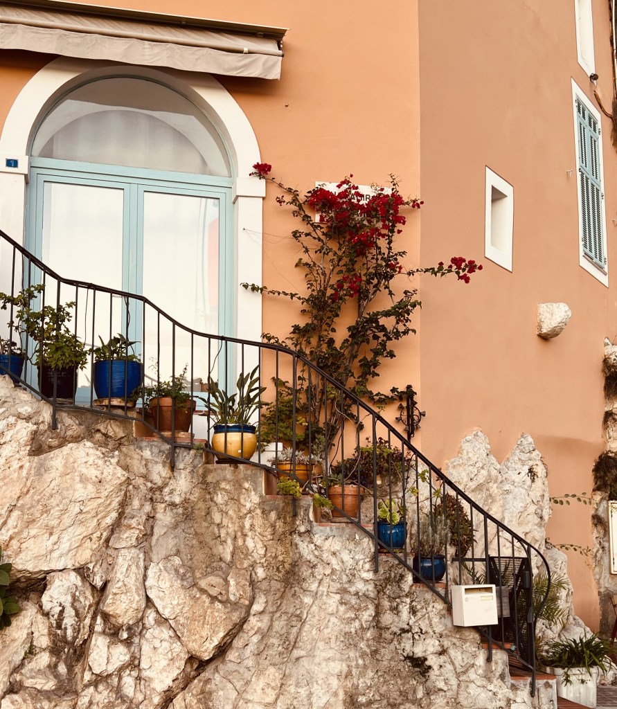 So I get up for my morning walk, eager to explore this new place… and each morning I head for a different part of town. Villefranche has a picturesque Old Town (Vieille Ville), built on a terrace overlooking the sea with a labyrinth of streets and laneways with never-ending steps that are perfect for exploring.