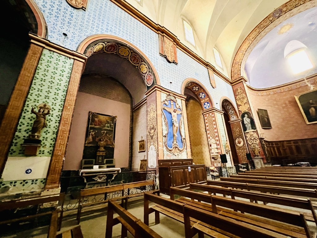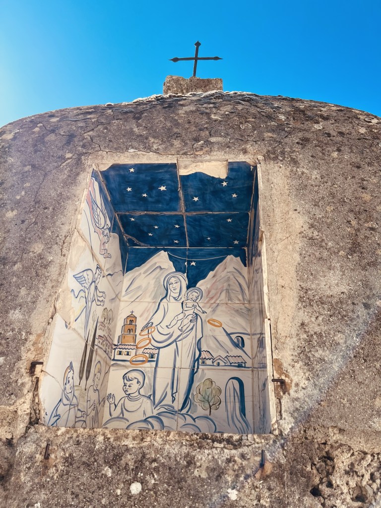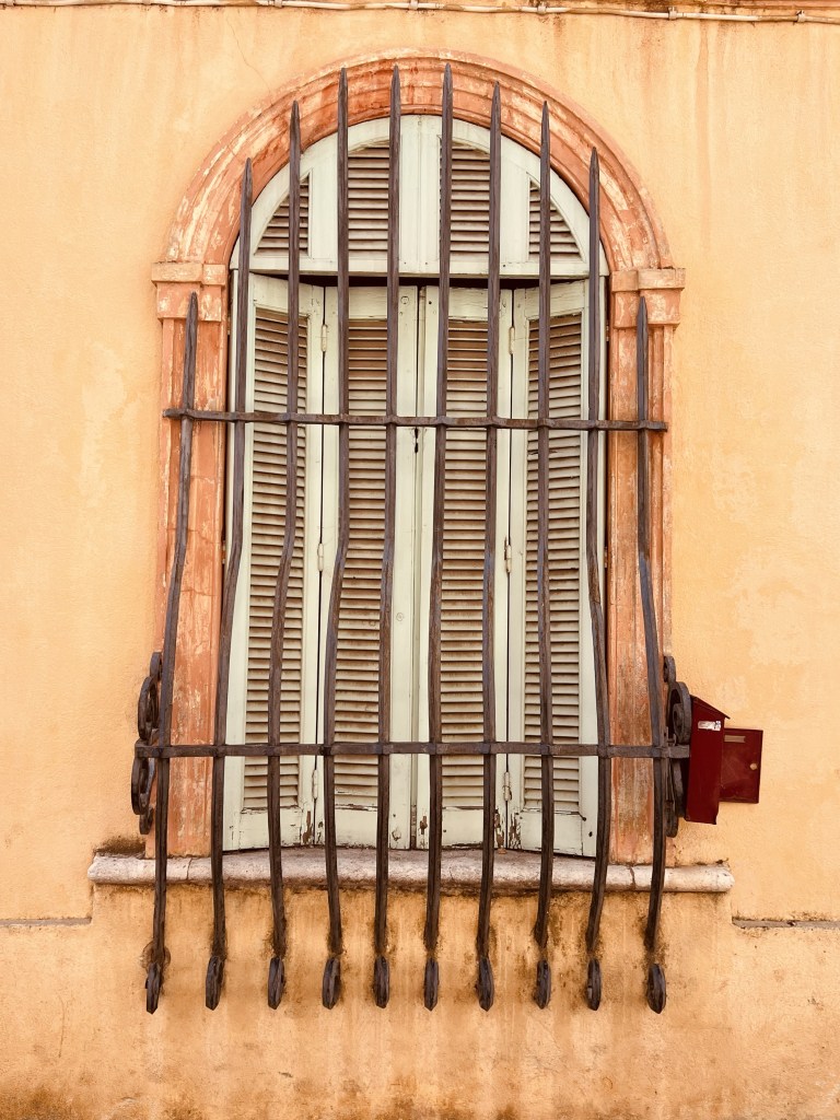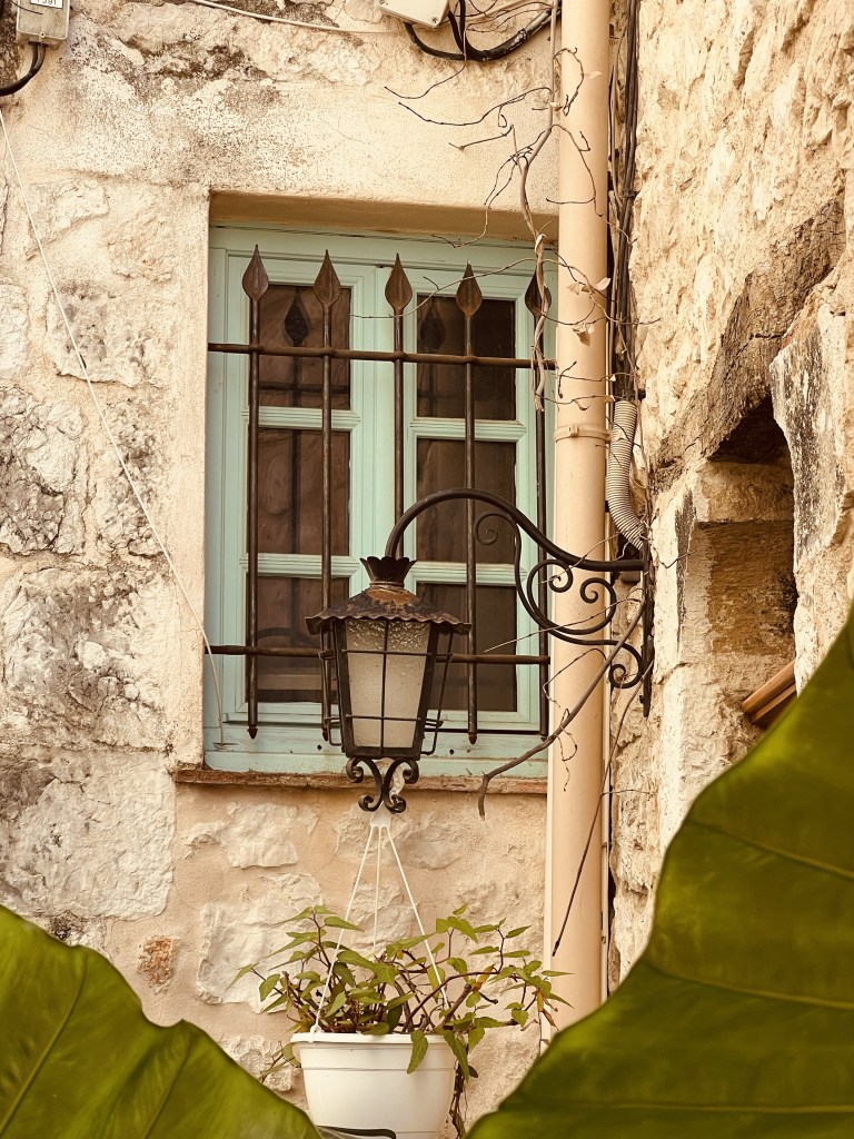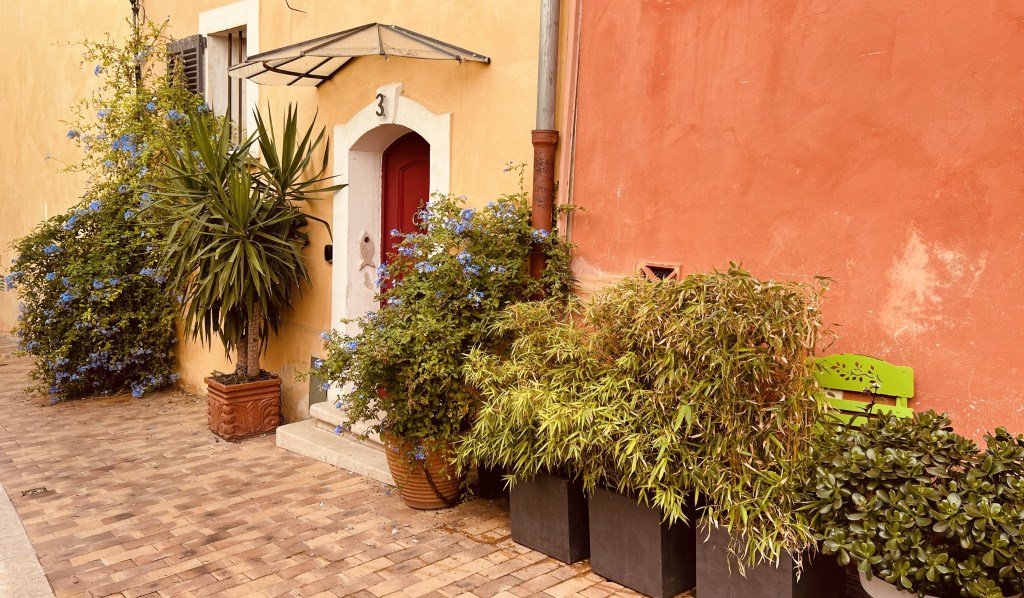 There are none of the bright and beautiful well cared for flower boxes and street decorations of all the previous places we have visited. Here it is much more rustic and lived in… with lots of greenery… and some bougainvillea (sadly past it’s best)… perhaps due to the hotter drier climate.