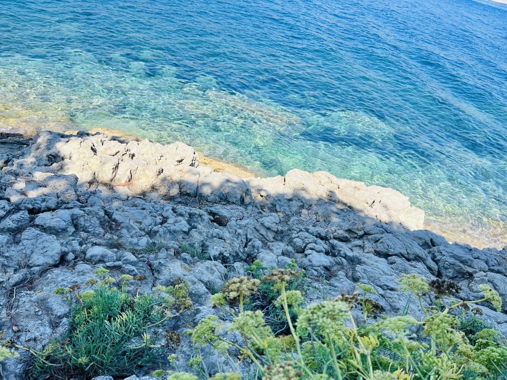 … and after the walk, we very definitely needed a swim. Our small seaside promenade leads onto a clean pebble beach… not sandy like at home (we’re very spoilt), but also not rocky as it is in other places- instead there is a fine gravel where you can walk freely without water shoes that you need at many Mediterranean beaches. Cool, clear and refreshing- just what we needed after a day of adventuring.