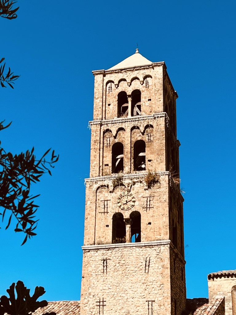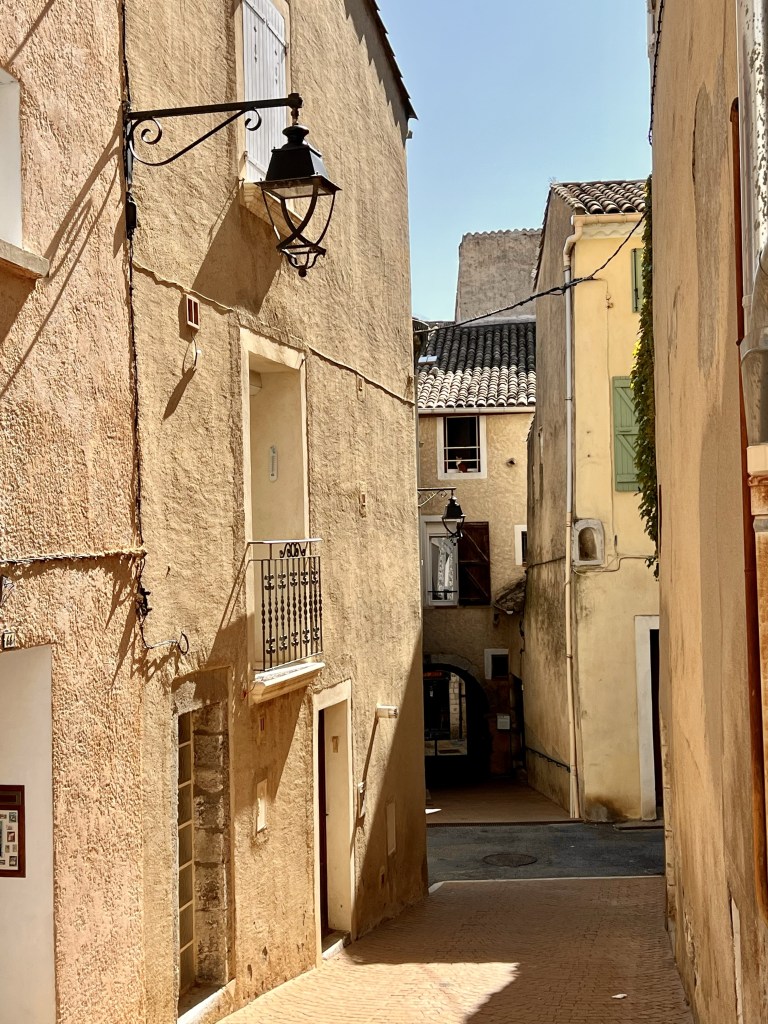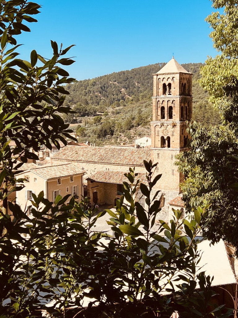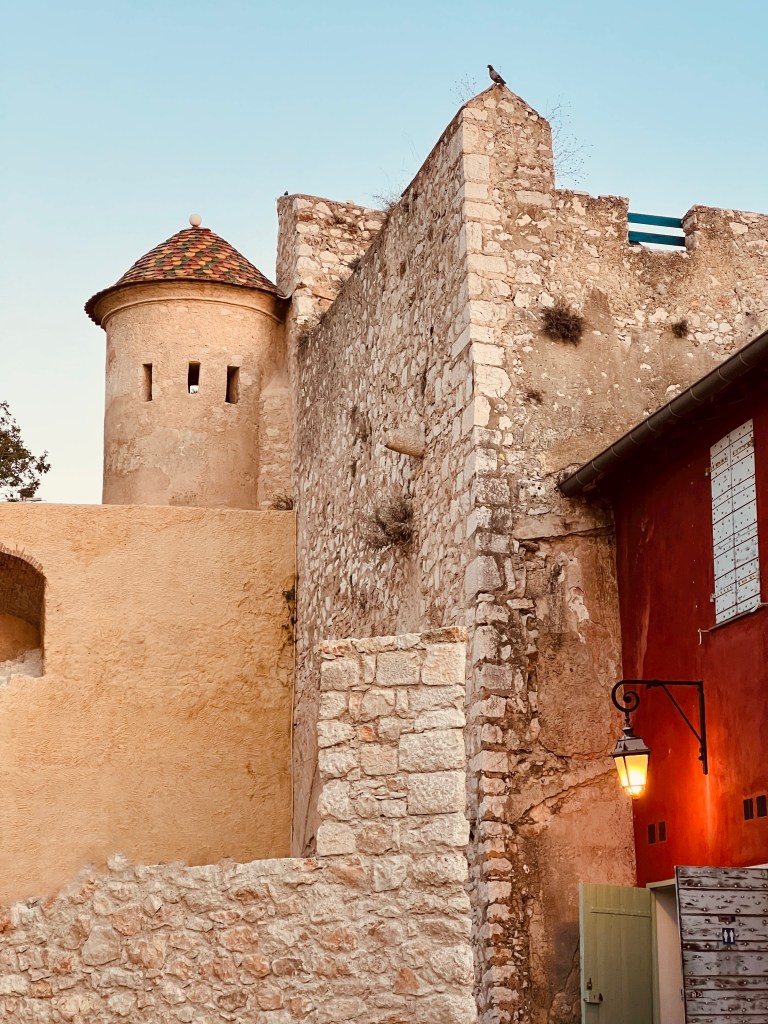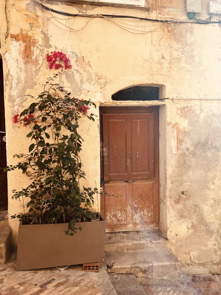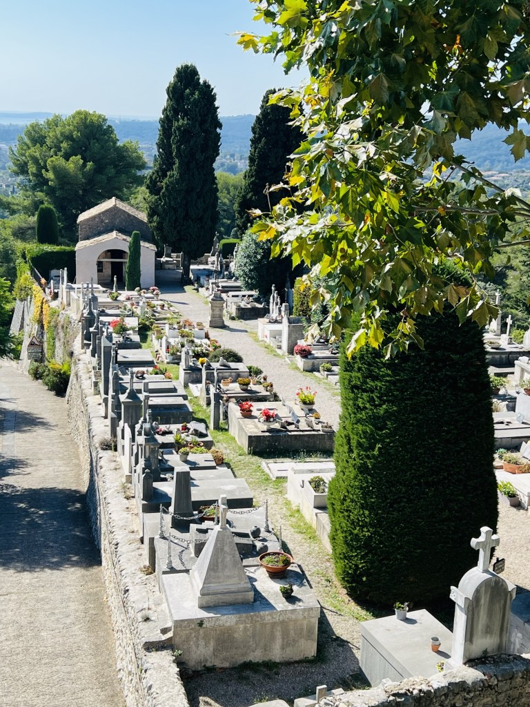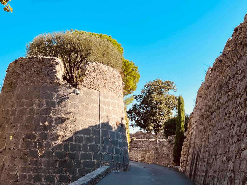 As soon as I walked through the gates to this medieval village I once again felt like I had entered another world and another time. It was so beautiful, with tiny cobblestone streets and buildings that felt like they should only exist in a fairy tale… and you know how I love those fairytale towns! Except for all those pesky tourists 😂. Immediately, all I wanted to do was explore and so we spent the morning just wandering through the little inside streets, and walking along the rampart walls which give you amazing views of the countryside and the Mediterranean Sea. With the sunlight reflecting off the azure blue of the sea, the vivid greens from the vineyards and olive trees sloping down into the valley, the yellow and ochre colours of the rampart walls, and the beautiful cemetery just below the town… it was truly stunning.