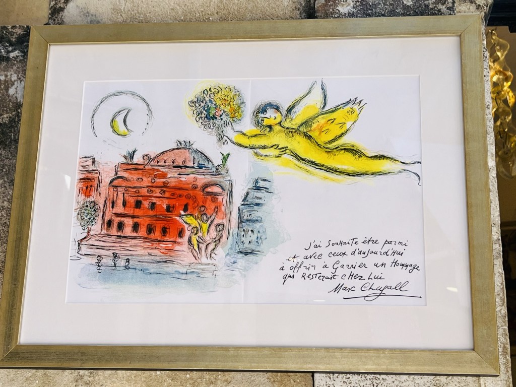 The Russian painter Marc Chagall resided in the village from 1966 until he died in 1985. For years he depicted the lives of local people and the marvellous landscapes of the French Riviera and we saw some of his original works… and some original Picasso drawings as well.