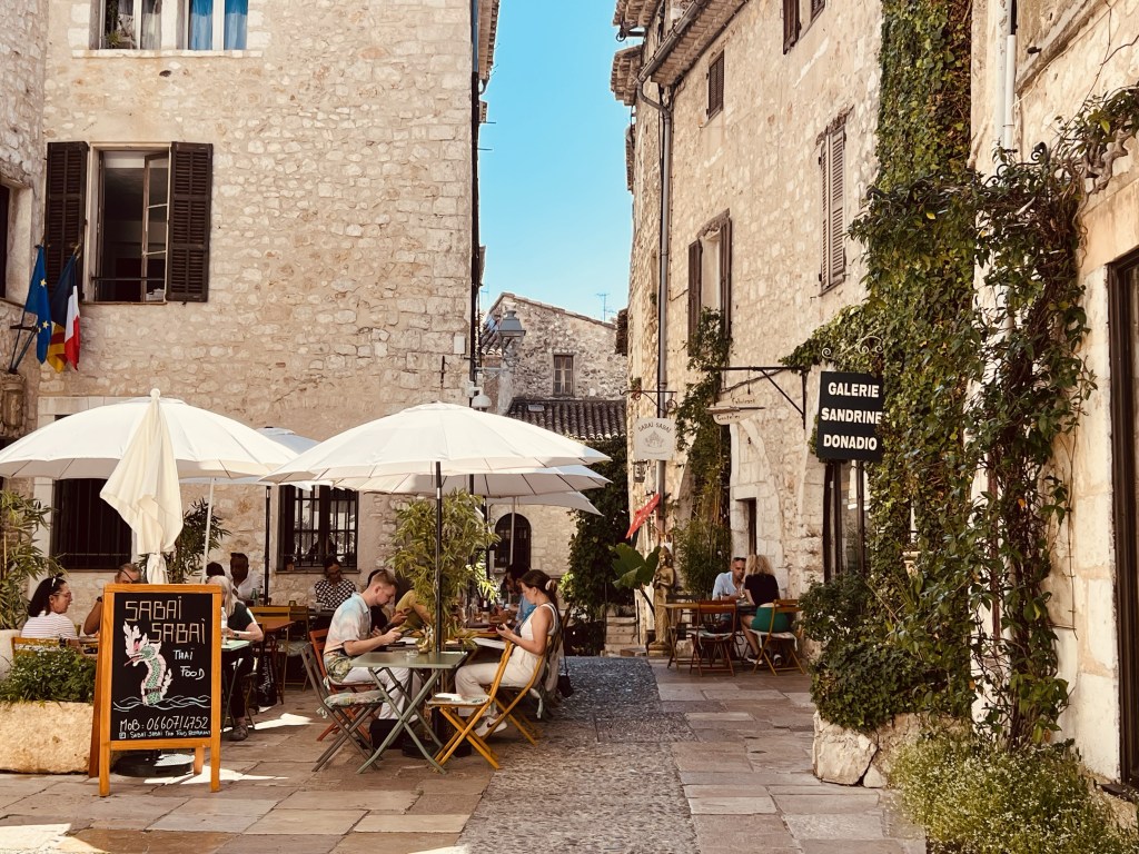 I’d heard so much about Saint Paul De Vence. They say it is probably the loveliest and most well preserved of the perched villages you’ll find in the south of France… and it is regularly compared to Eze which we had visited a couple of days ago… and I struggled to see how you could top that. But I was excited to experience the comparison and add my opinion (yes I’ve always got one) to the question. They say it is pretty… arty… touristy. Some say it’s too touristy… some people say it doesn’t matter. I’d seen the beautiful pictures. So let’s go and see.