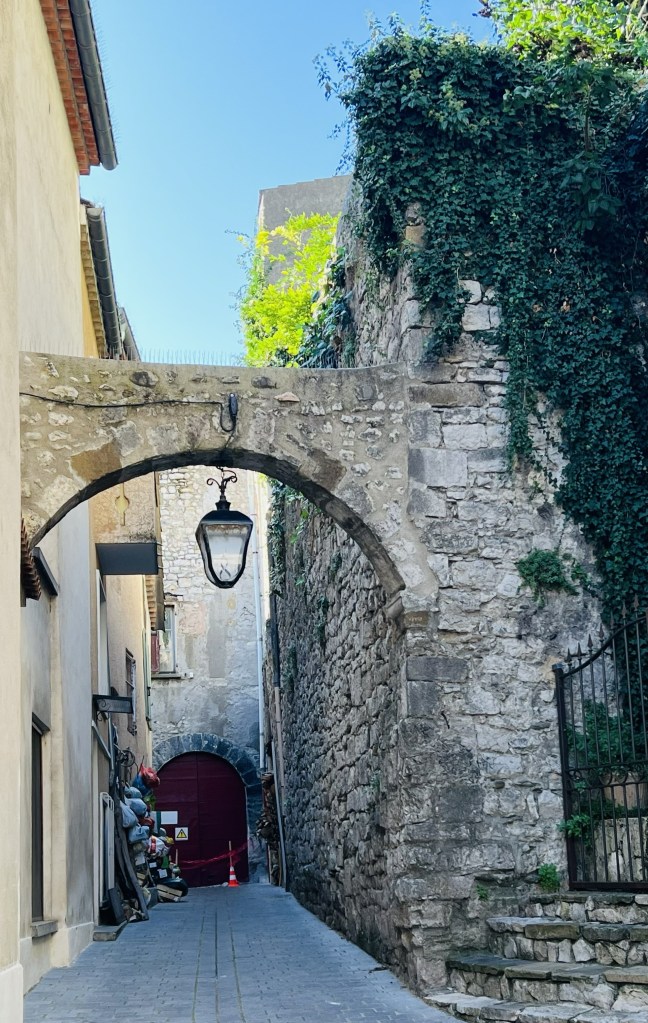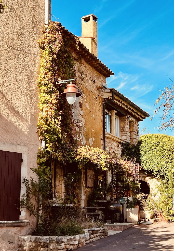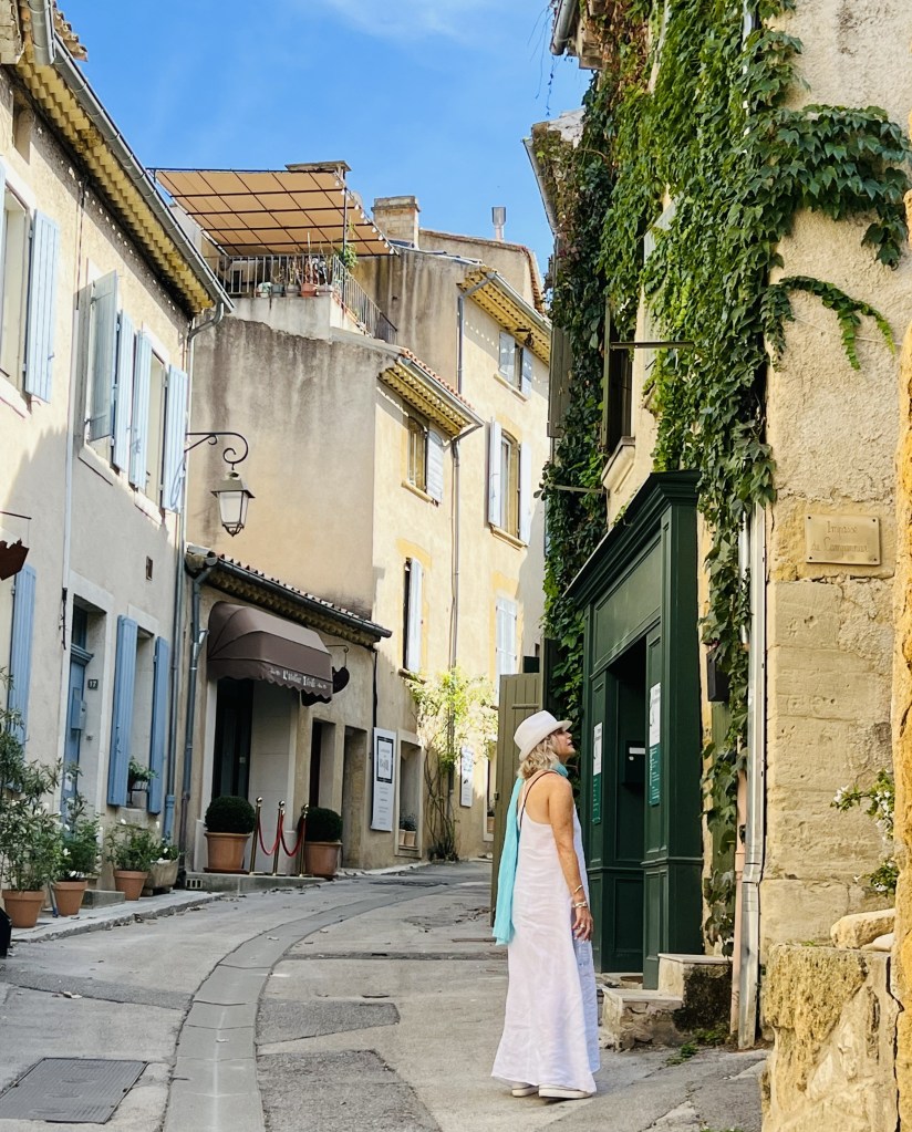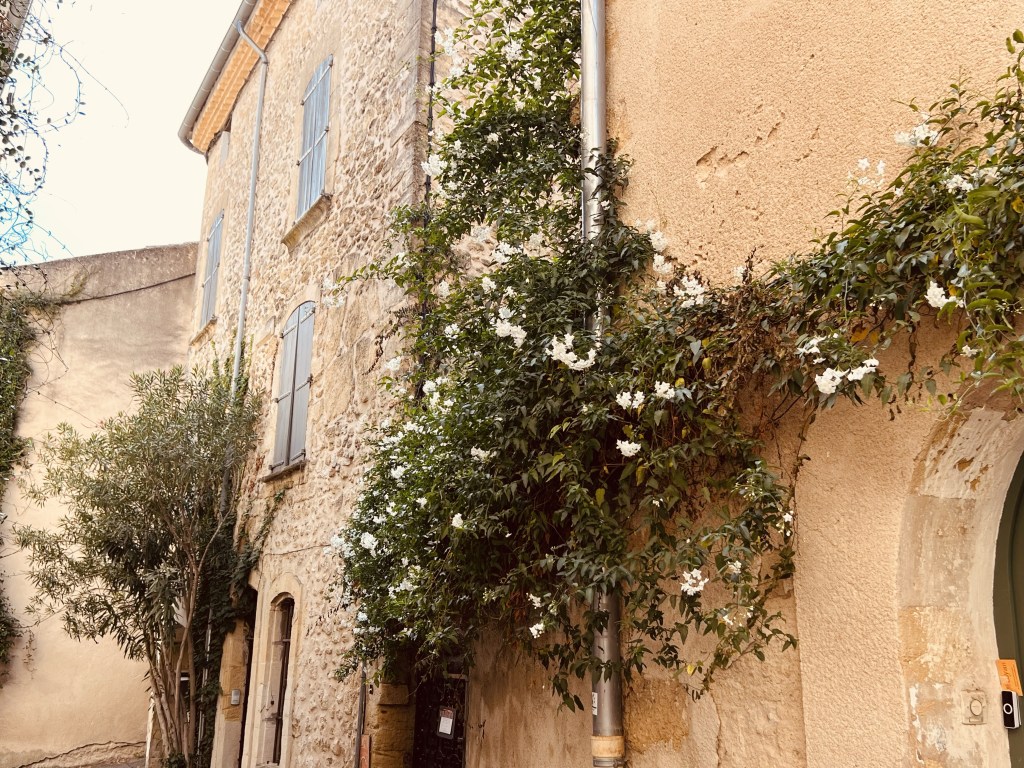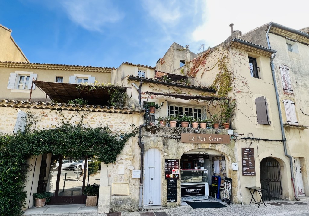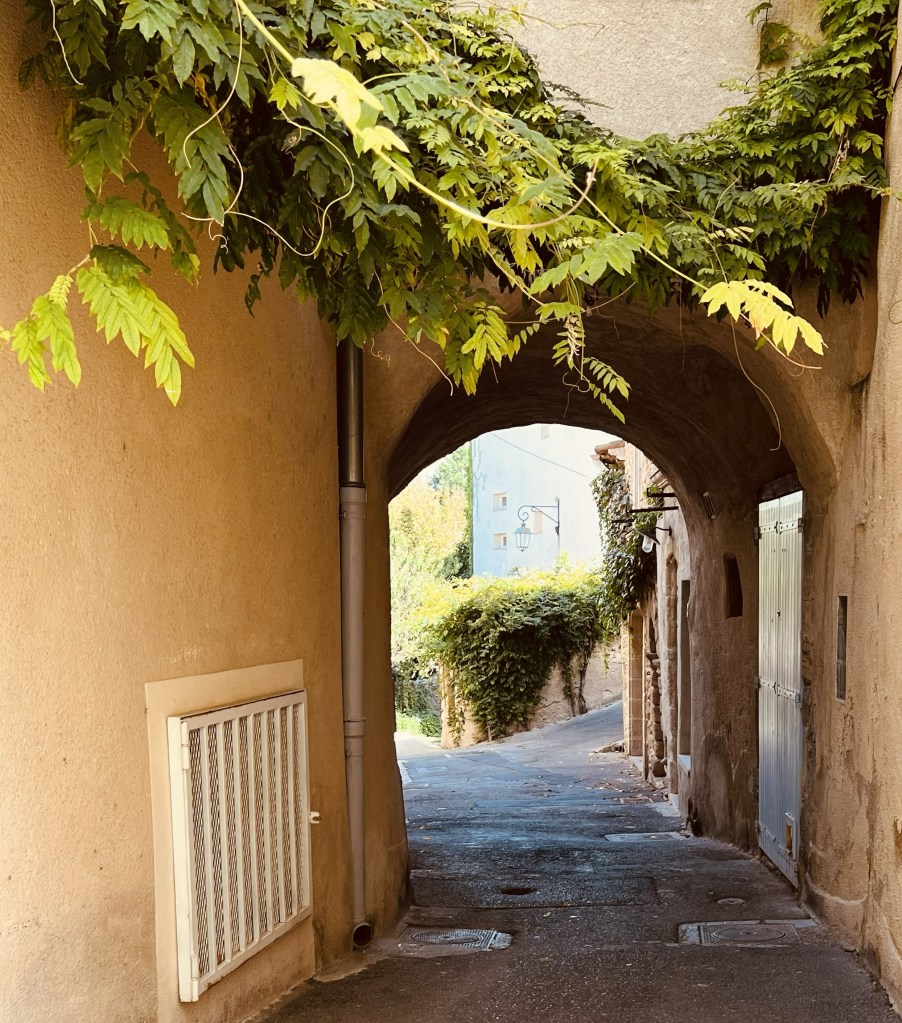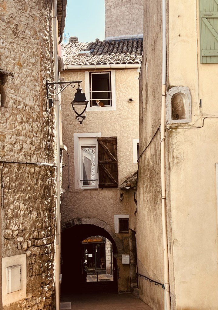 The little town of Loumarin is beautiful and very photogenic, with cobblestone streets… where ivy drapes over arches and scrambles up walls of ancient houses decked with flower pots… complete with friendly cats who follow you as you make your way through the tiny village. Quaint shops are plentiful as are cafes with outdoor seating and from the moment we arrived in the village it wrapped us in its sun-drenched embrace.