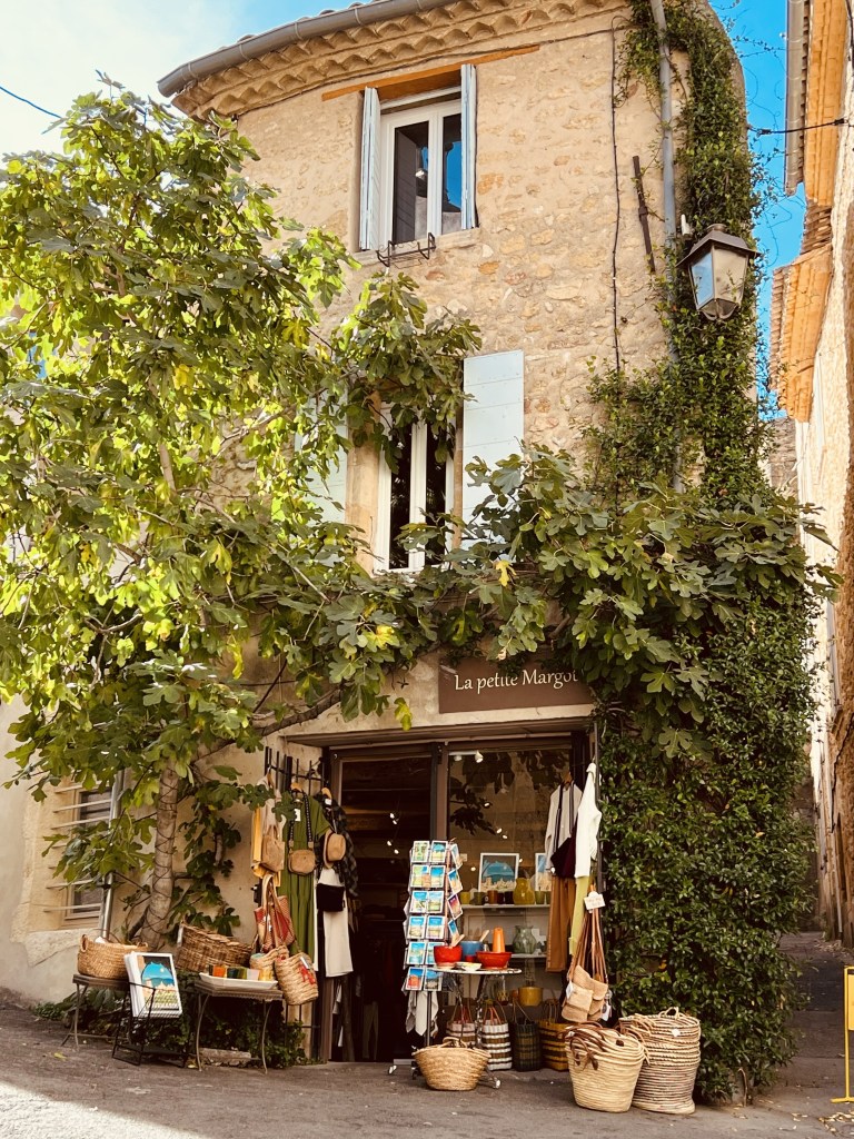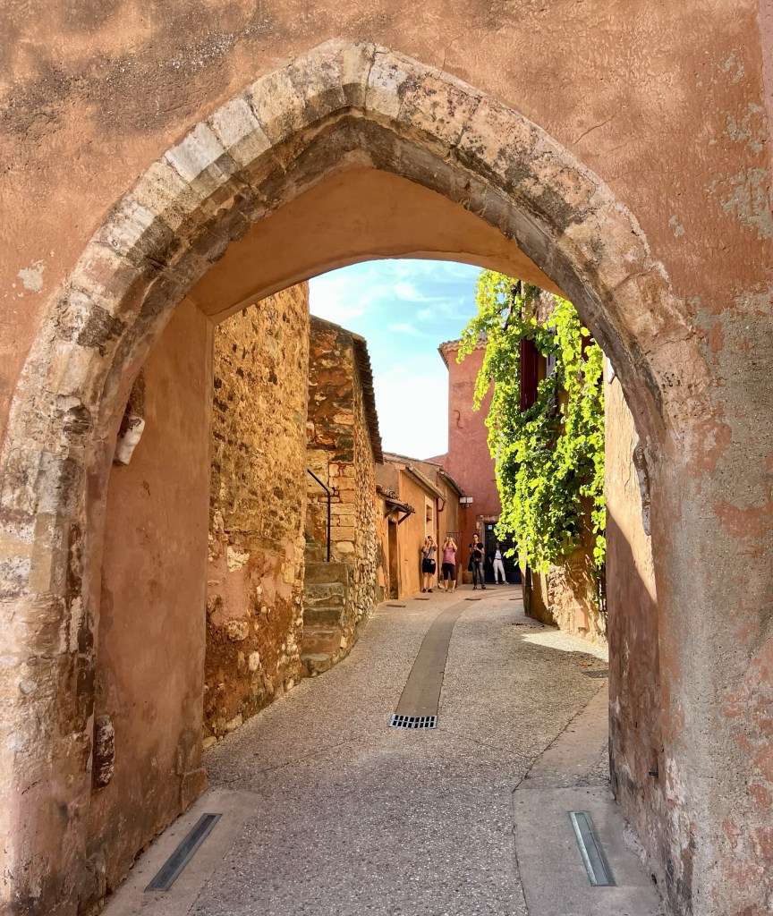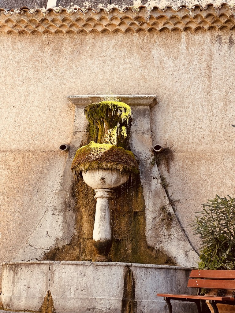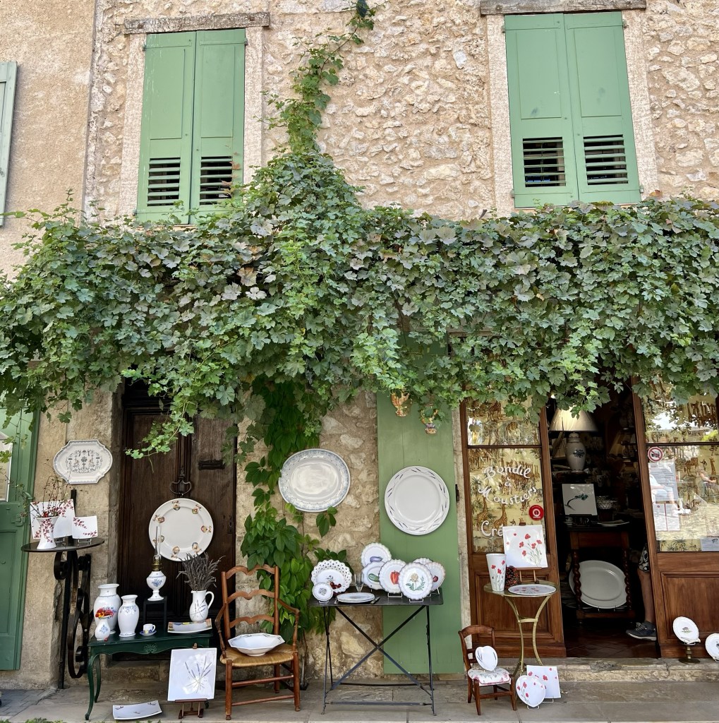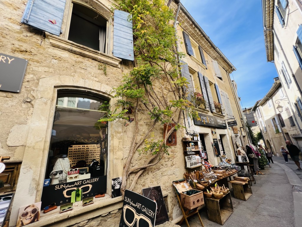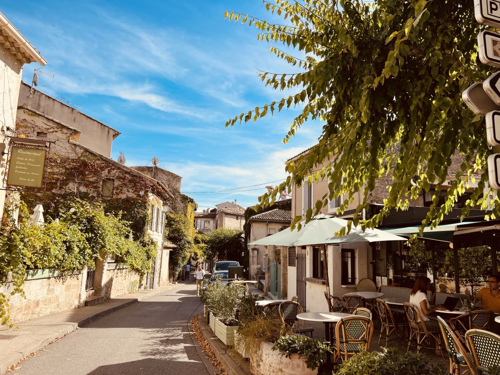 The little town of Loumarin is beautiful and very photogenic, with cobblestone streets… where ivy drapes over arches and scrambles up walls of ancient houses decked with flower pots… complete with friendly cats who follow you as you make your way through the tiny village. Quaint shops are plentiful as are cafes with outdoor seating and from the moment we arrived in the village it wrapped us in its sun-drenched embrace.