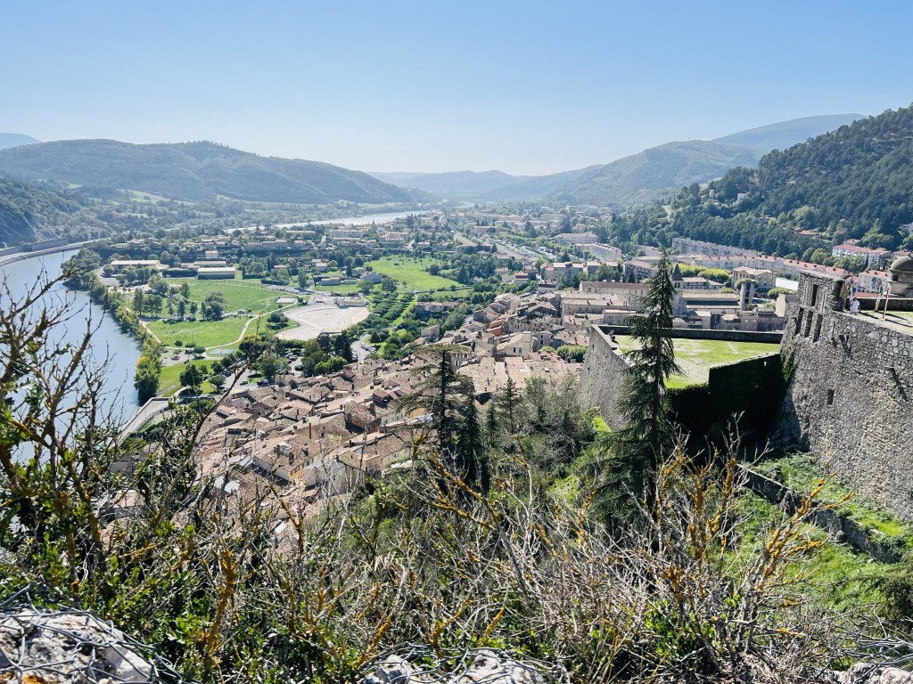 … and from the towering centuries-old chateau that overlooks the town…