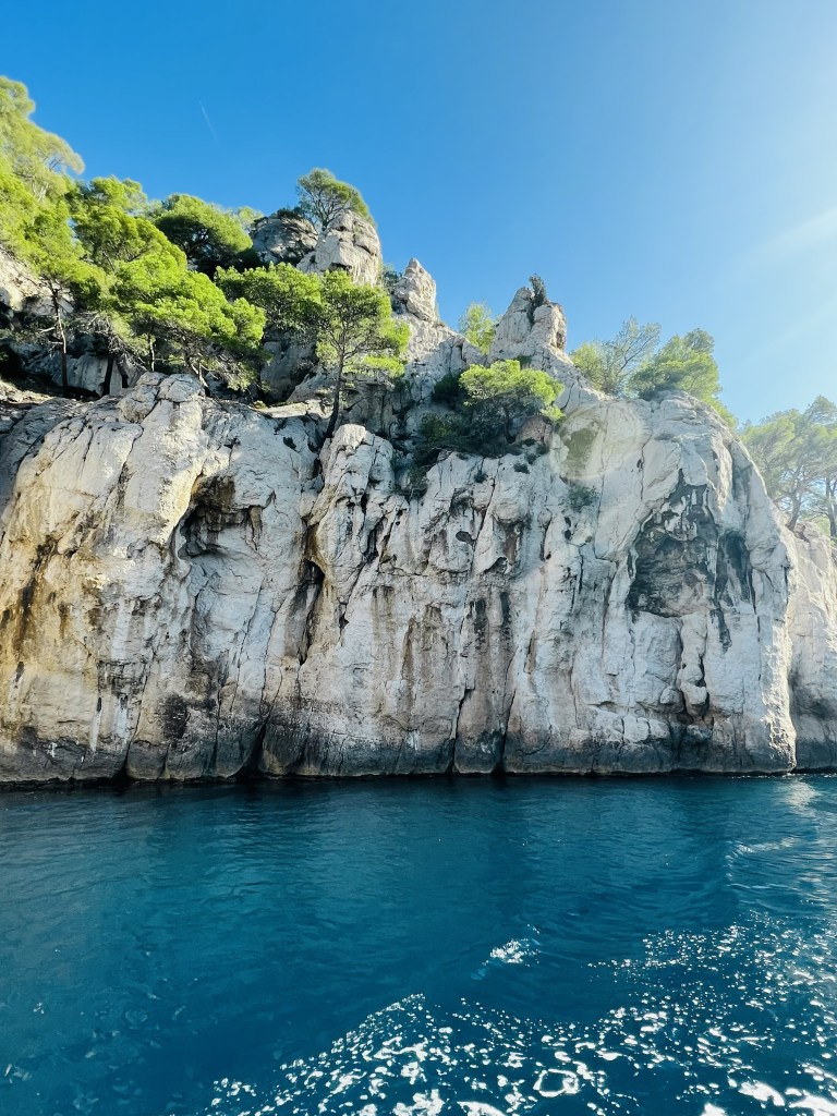 So, we had a very big day planned on a small all day tour with lots of stops filled with the beauty of Provence. First stop Cassis… a picturesque Mediterranean fishing port. The area is known for its calanques… stunning narrow inlets framed by dizzyingly steep, rocky limestone cliffs and crystal-clear turquoise water.