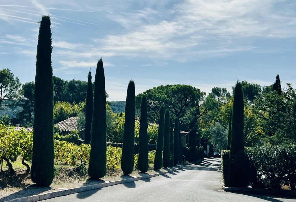 But first we had to get there! Another adventure without a car as it is situated in a small town close to Aix. All dressed up with Anne in her heels (not me these days) we hopped on a bus and headed out to the sticks. The lovely bus driver was not keen to let us out where we requested, obviously with our safety at heart, telling us it was a dangerous road. What do you do? Following Google maps we came to a goat track and Anne said no. So we followed the ‘dangerous’ road… dangerous because there was literally nowhere to walk but right on the road, until we got to the property. But they say nothing good comes easy! We are probably the only people to ever arrive somewhere like this on the bus 😂.
