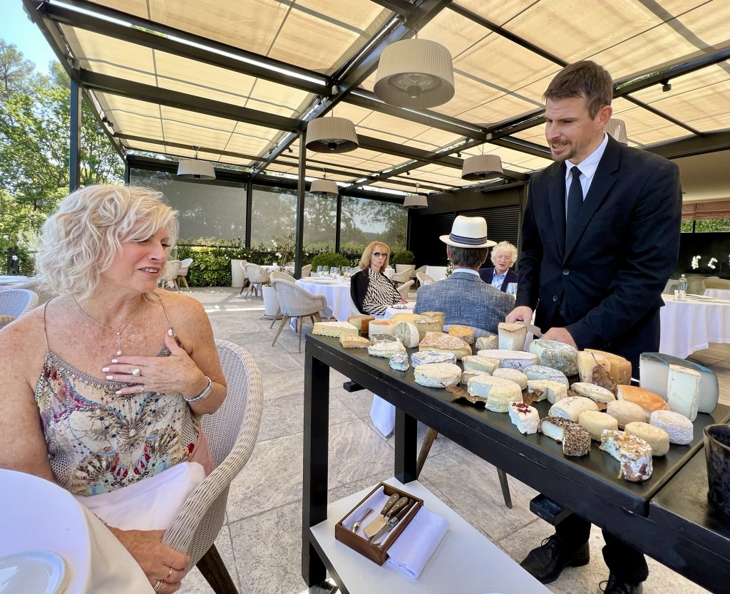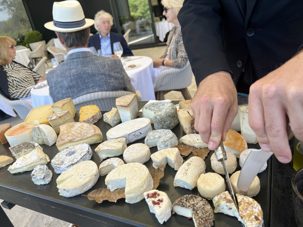 Anne experienced the cheese trolley- something neither of us had seen before… so many delicious types of cheese!