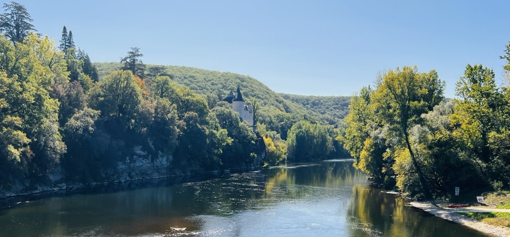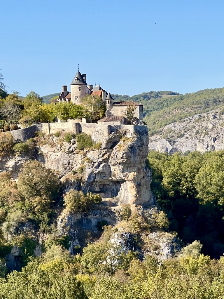 Chateaus straddled vertiginous cave-pocked limestone cliffs attempting to outdo each other in beauty. We drove through destinations that were each more stunning than the last… stunning hilltop vistas… any one of them could have been the highlight of our trip but there was only time for quick photo stops and no time to explore. But the drive itself was simply breathtaking.