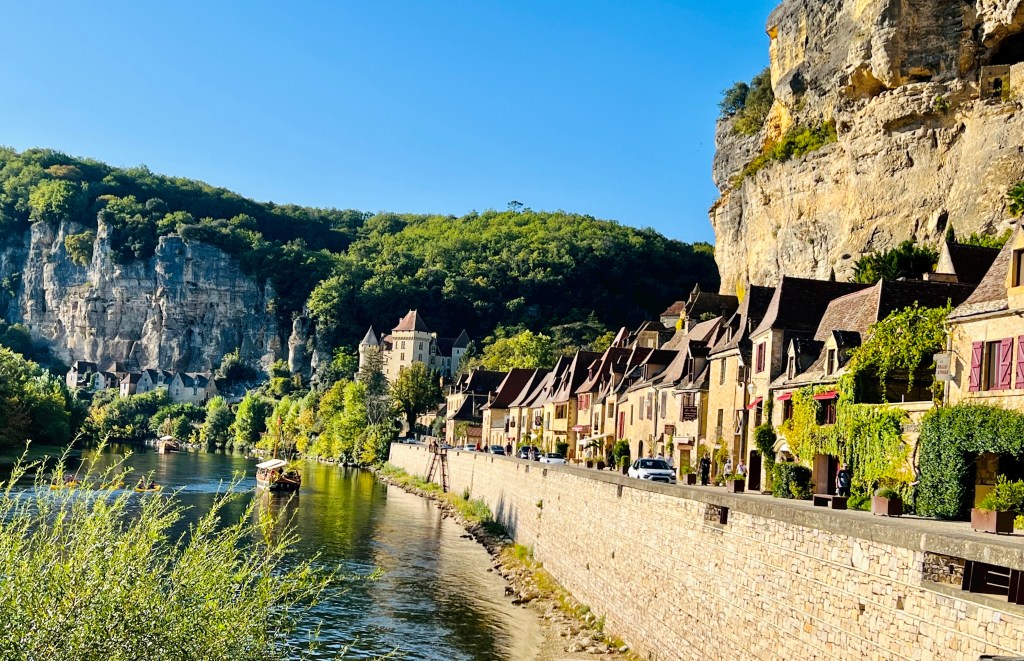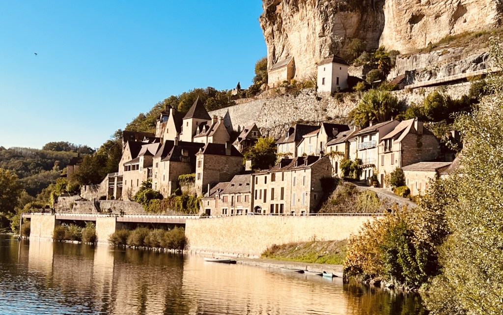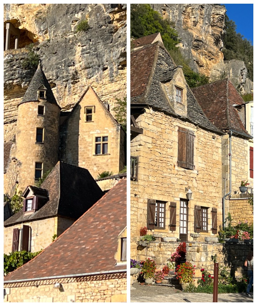 We moved onto La Roque-Gageac with its dramatic setting built into almost vertical cliffs rising from the lazily curving river… and it’s castle… again this fairytale like land looks like something out of a story book. Another one of the ‘most beautiful villages’ in France, it features a maze of cobbled streets, a Romanesque church and a troglodyte fort. A line of restaurants runs along the rivers bank and it would have been wonderful to take one of the guided sightseeing trips in the traditional riverboats called a gambarre (that used to be used for trading). You can also paddle down the river on a canoe down one of the most spectacular river passages in the world with a half dozen castles looming in the hilltops high above the caves inhabited since prehistory poking into the cliffs over the water. Sounds like an adventure I would love but for now it will have to be added to that never-ending unachievable bucket list.