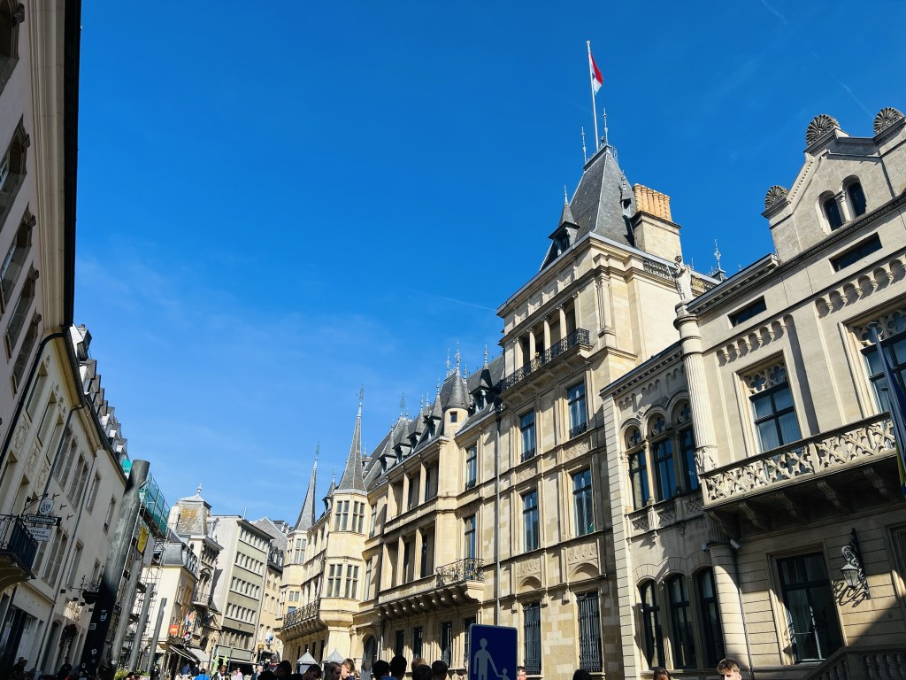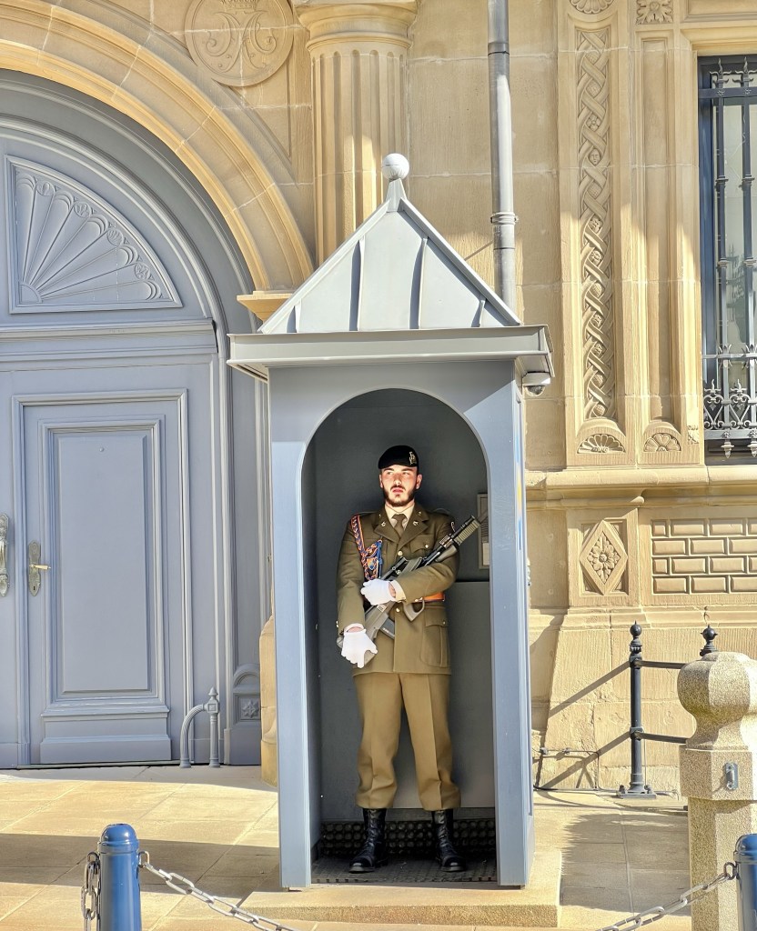 It is the official residence of the Grand Duke of Luxembourg. And this is where the Duke performs his duties as head of state. There are 2 guards at the palace entrance and they do a changing of the guard each day (which again we missed by 5 minutes 🤷🏼♀️).