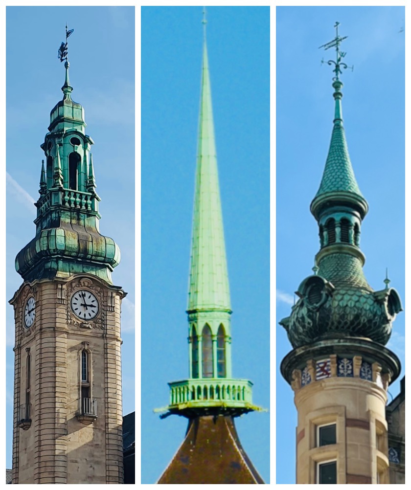 Lots of cool turquoise coloured spires and steeples