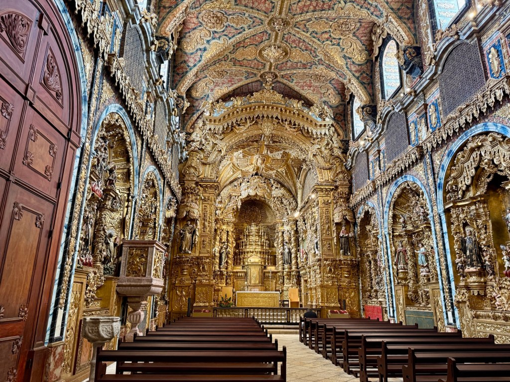 A lot of the churches and buildings are traditional white with black volcanic basalt rock accents on the edges, which is very characteristic for Portugal… and certainly for the Azores… all very black and white.